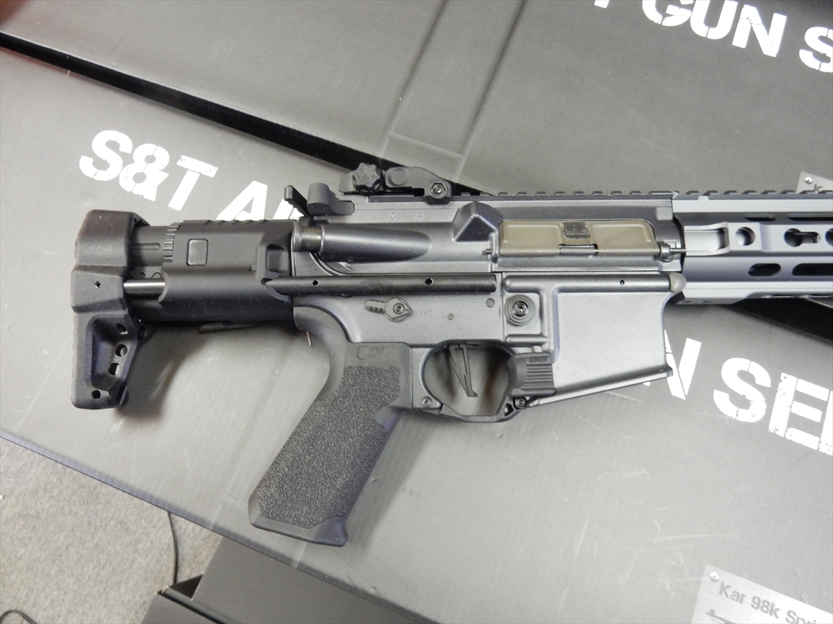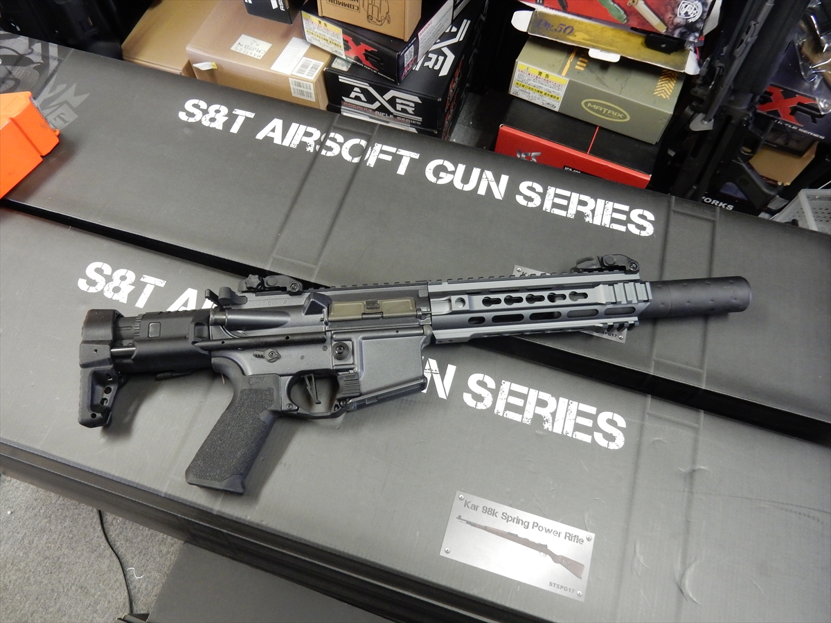 ワイヤーストックにハンドガードに刺さっているサプレッサーが特徴のM4ですね。