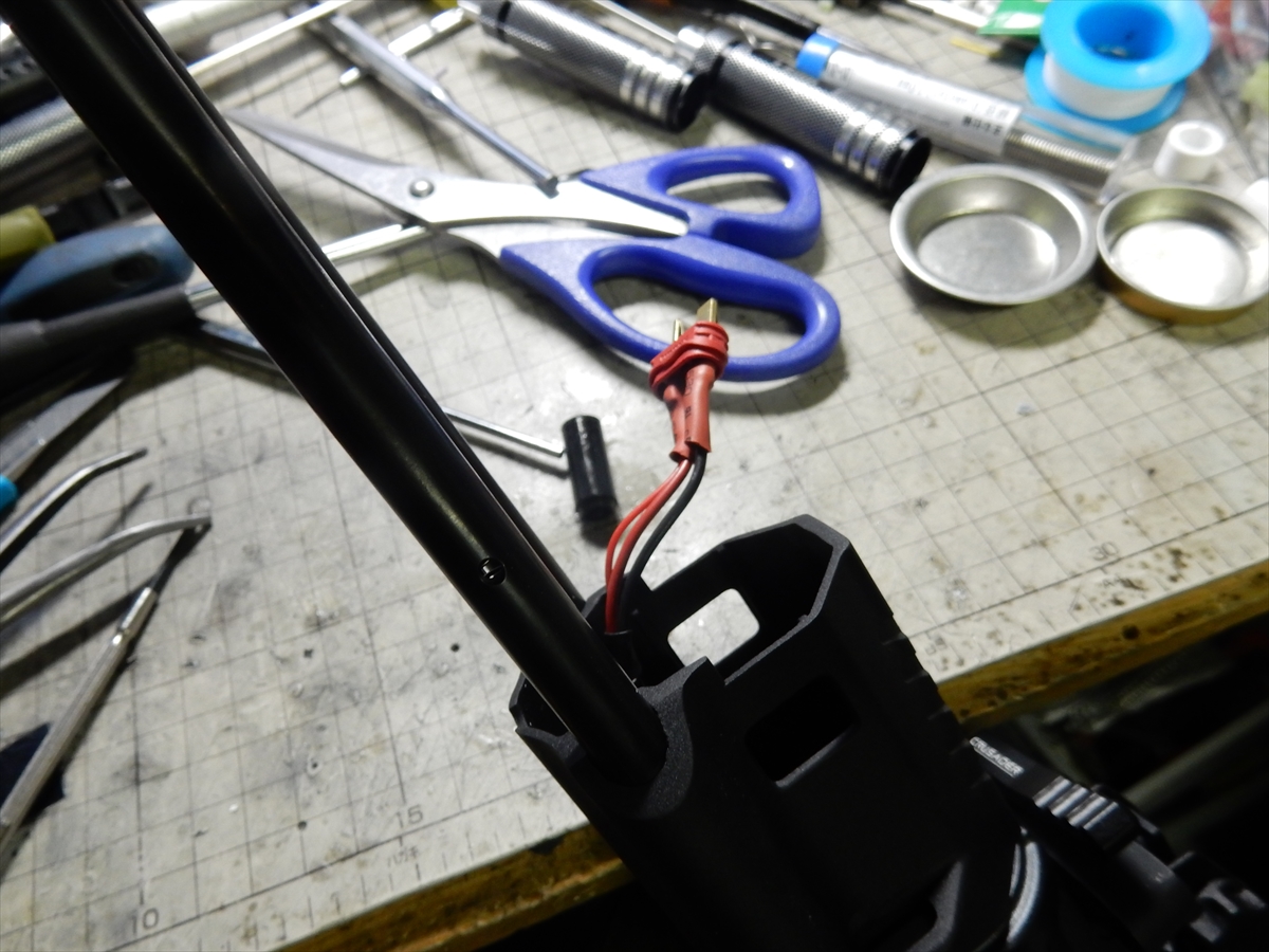 ワイヤーストックはバッテリーを選ぶので、配線は極力短くして、T型にします。