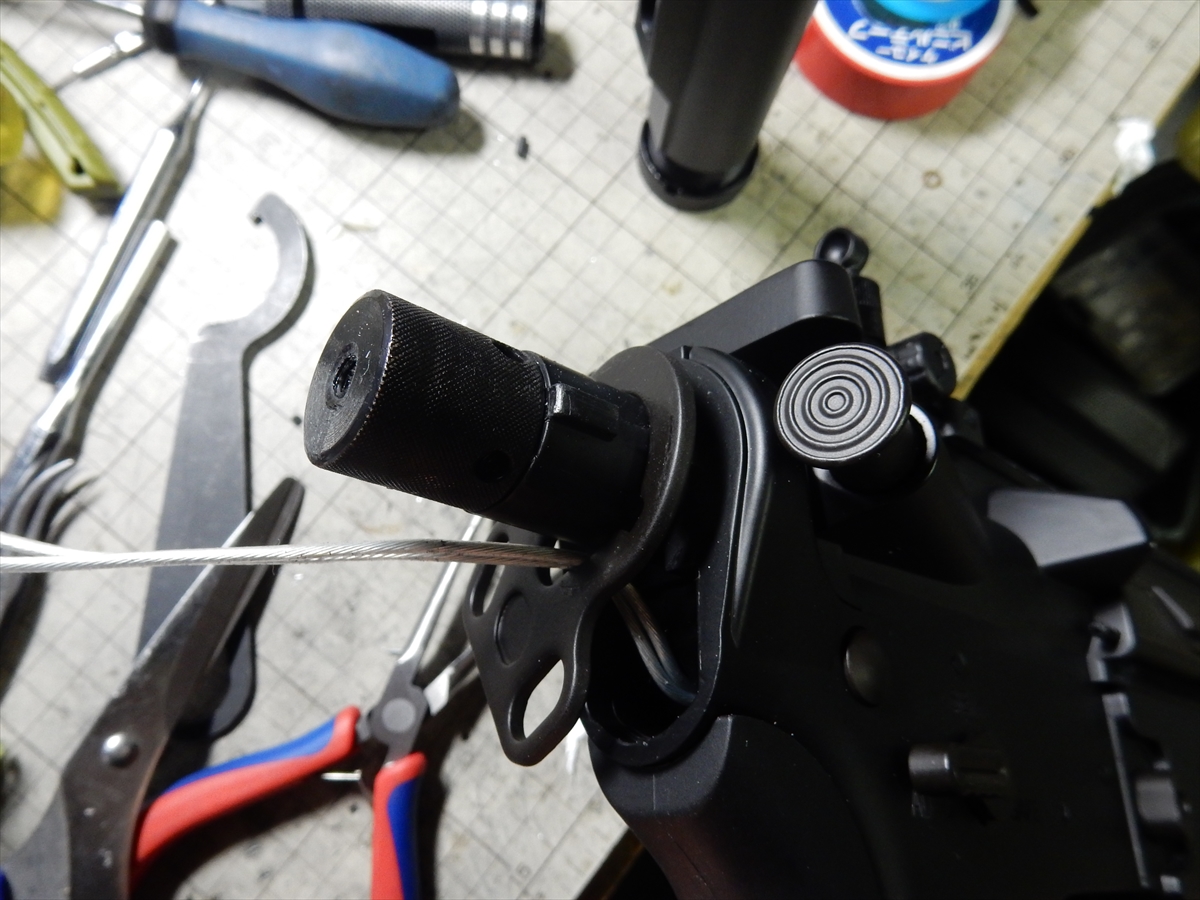 ストックなのですが、ネジ止めではなく、チューブリングを緩めて左へ45度回転されると抜けます。。。。