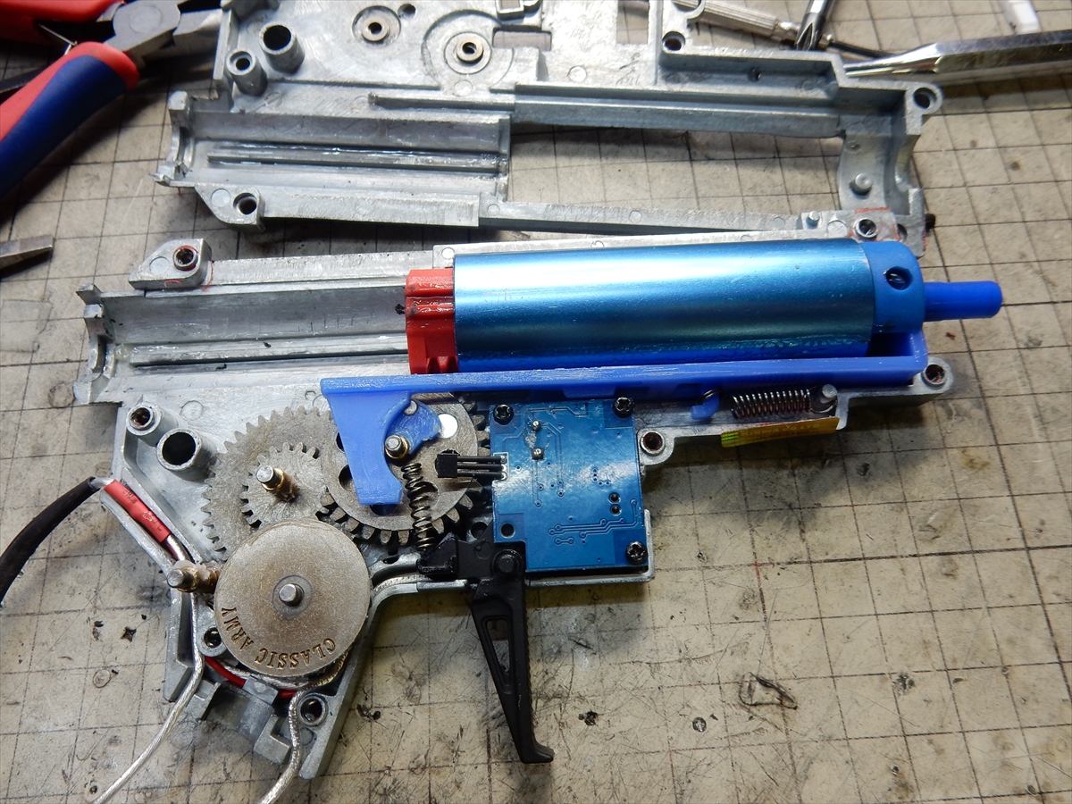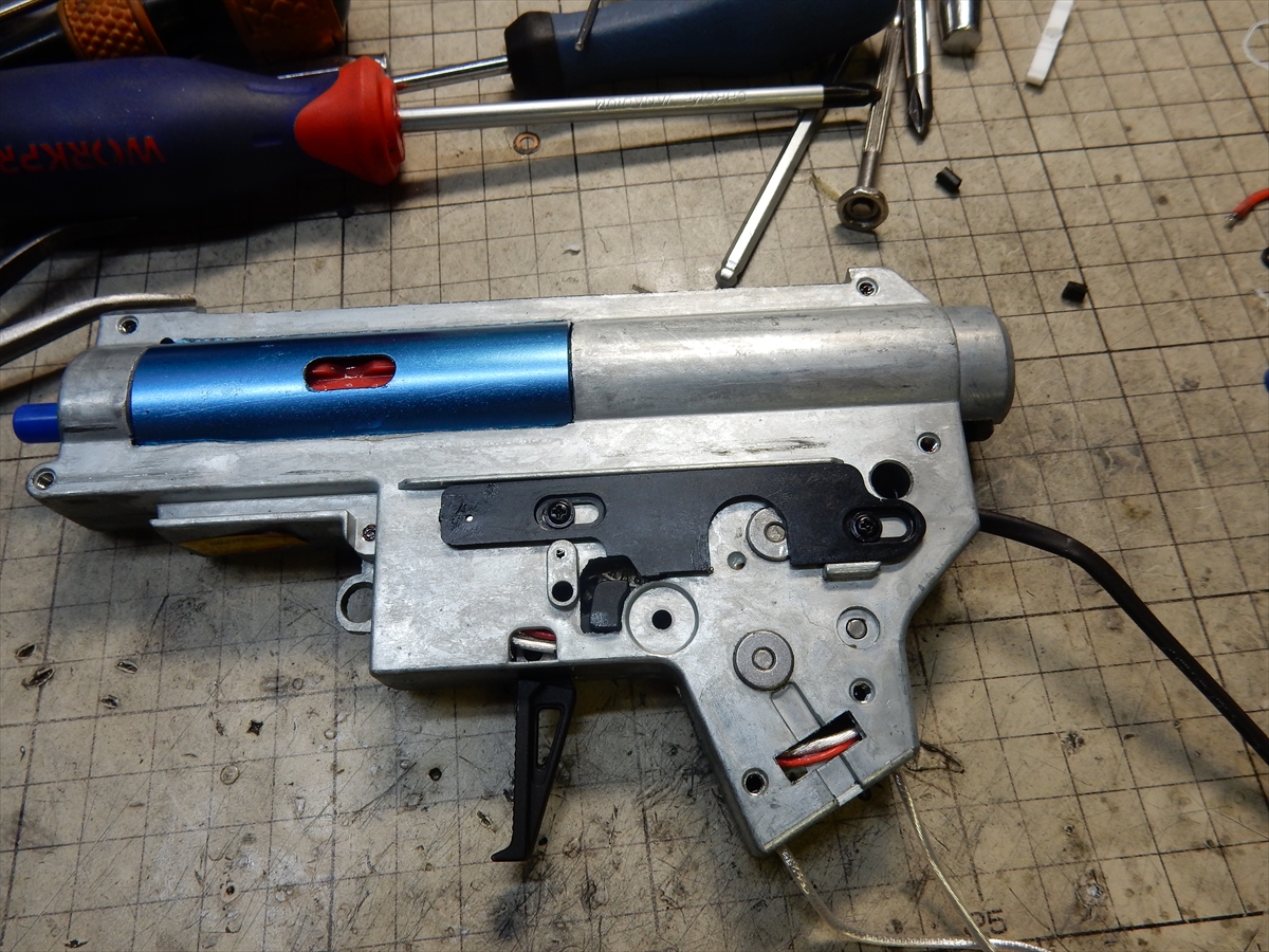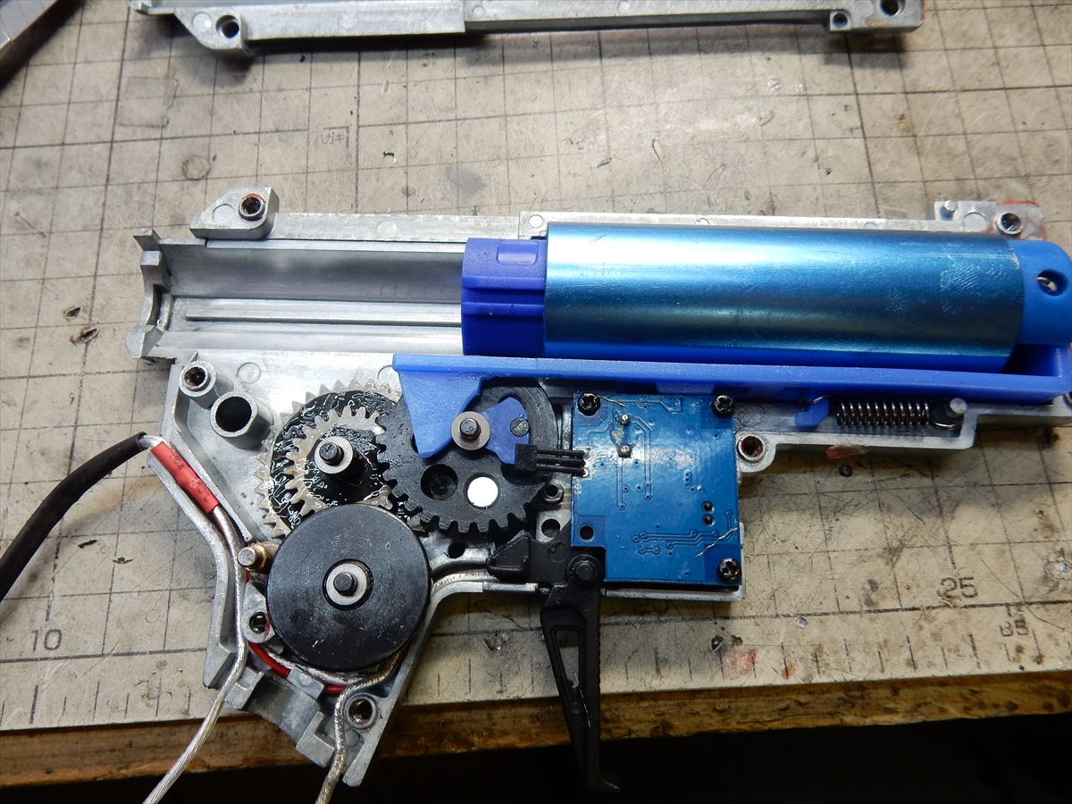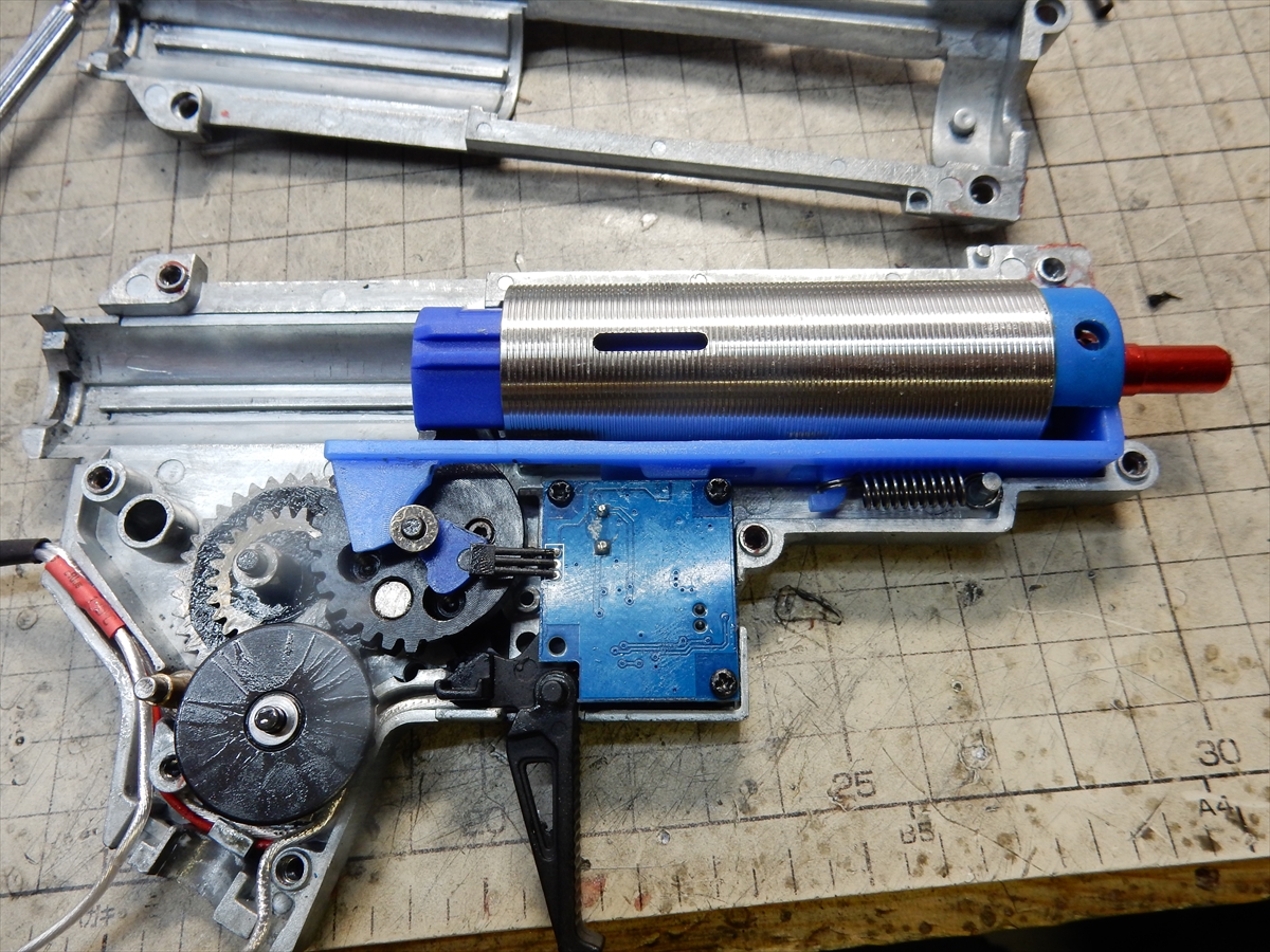 中身ですが、トリガースプリングが通常とは違い、メカボックスを締めてから入れられるので便利です。