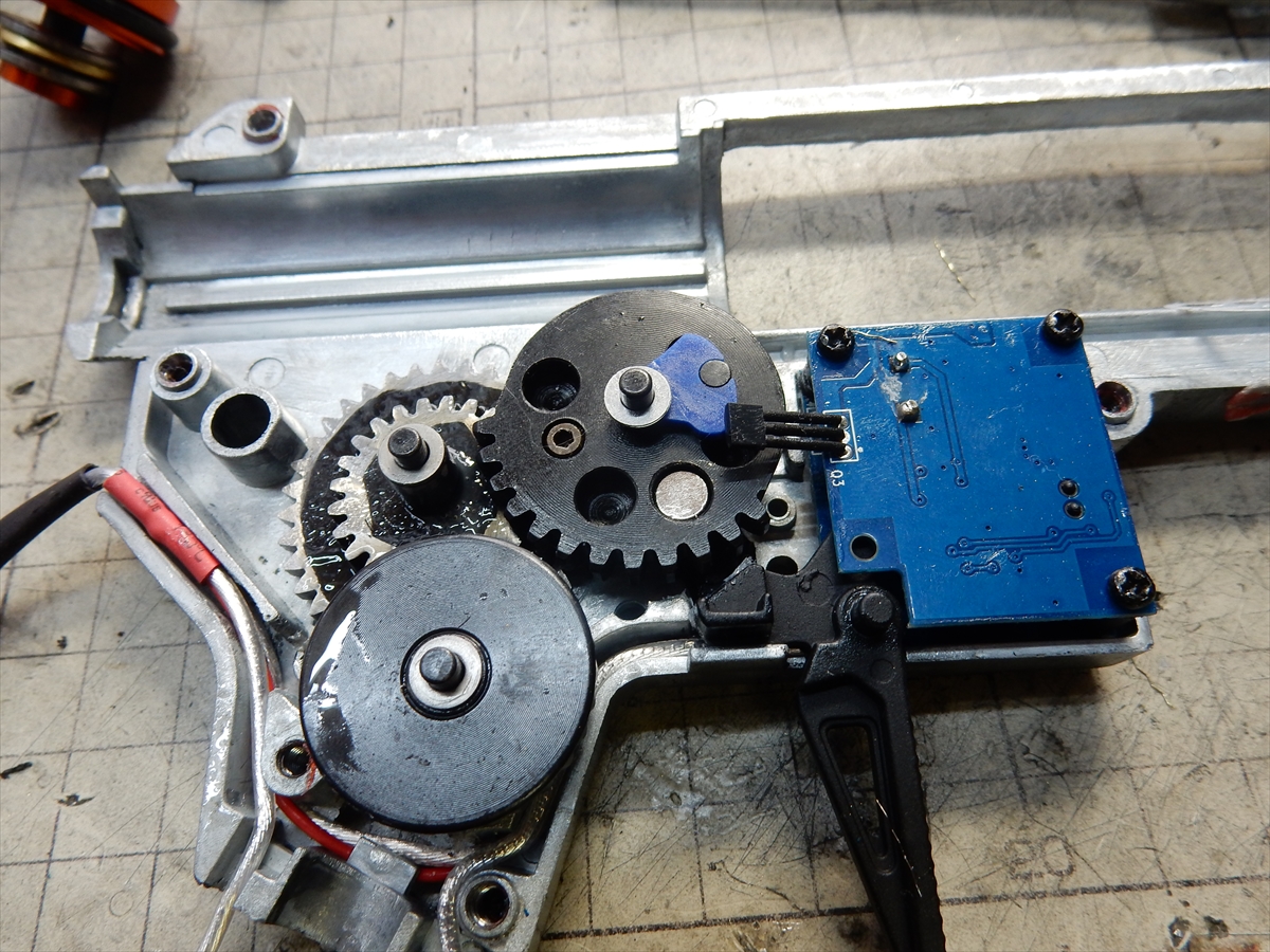 仮組・・・タペットとセクターチップがあってないので、少しずつ削って合わせていきます。