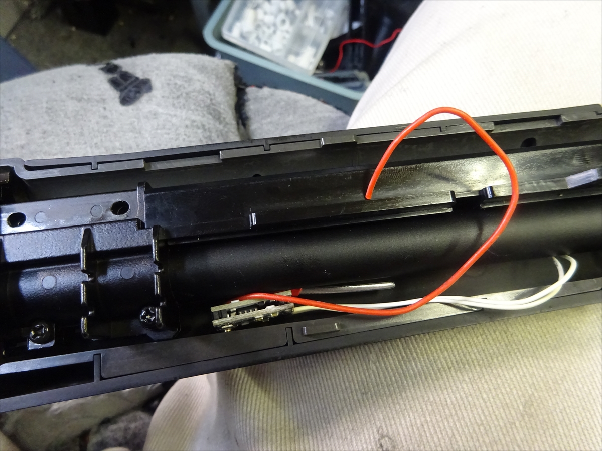 FET自体は、アウターバレル下部に仕込みます。あまり窮屈になるとスイッチ押してしまうので、少しクリアランスを取っておきましょう。