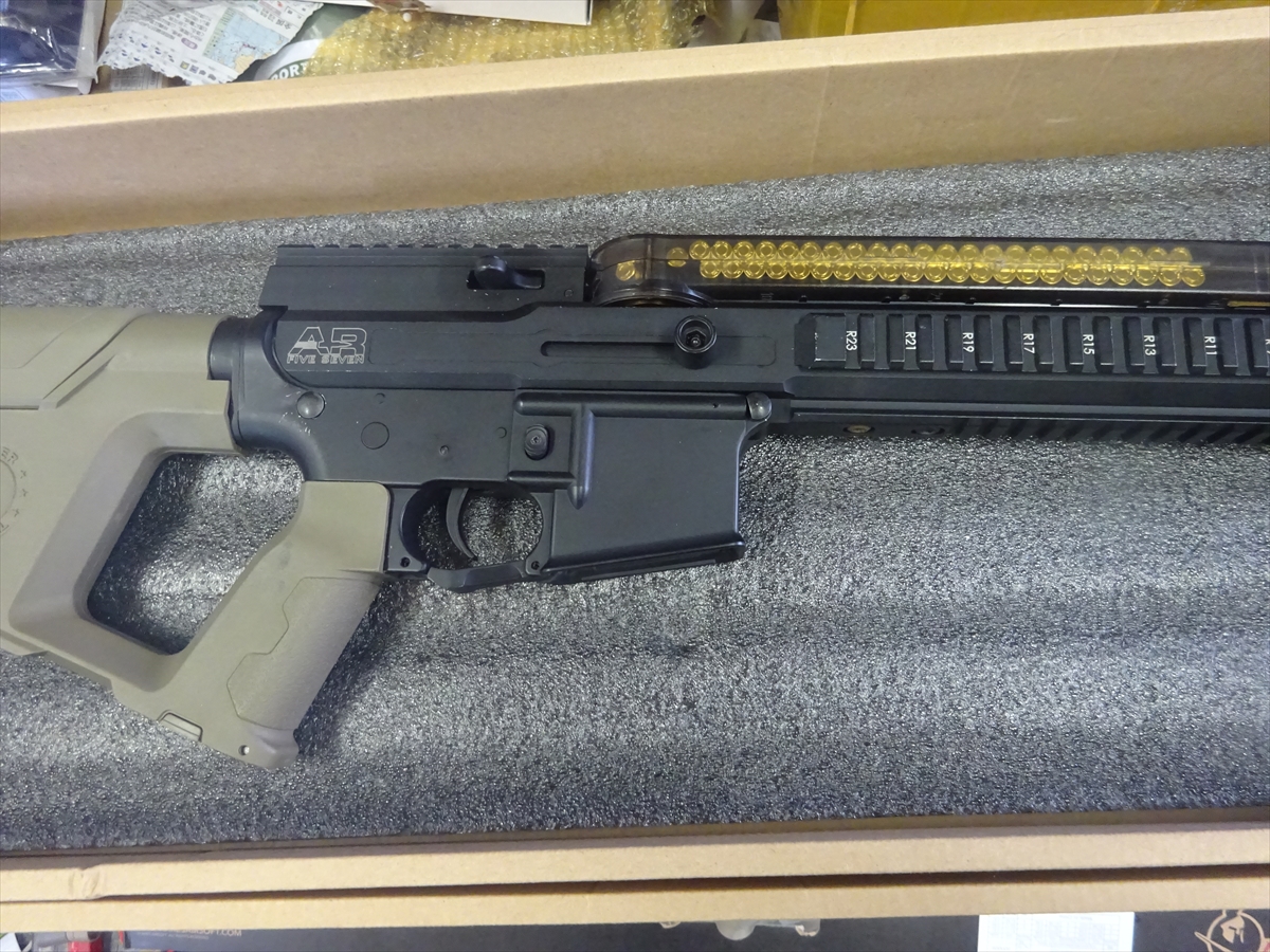 AR57は、P90に使用されている5.7mm弾及び弾倉をそのままM4系で撃ちだそうとするユニークARです。