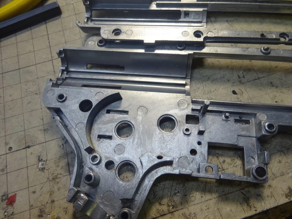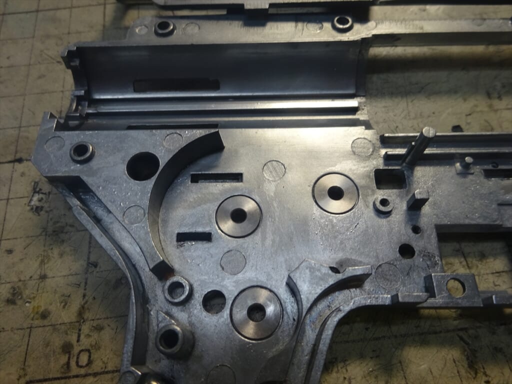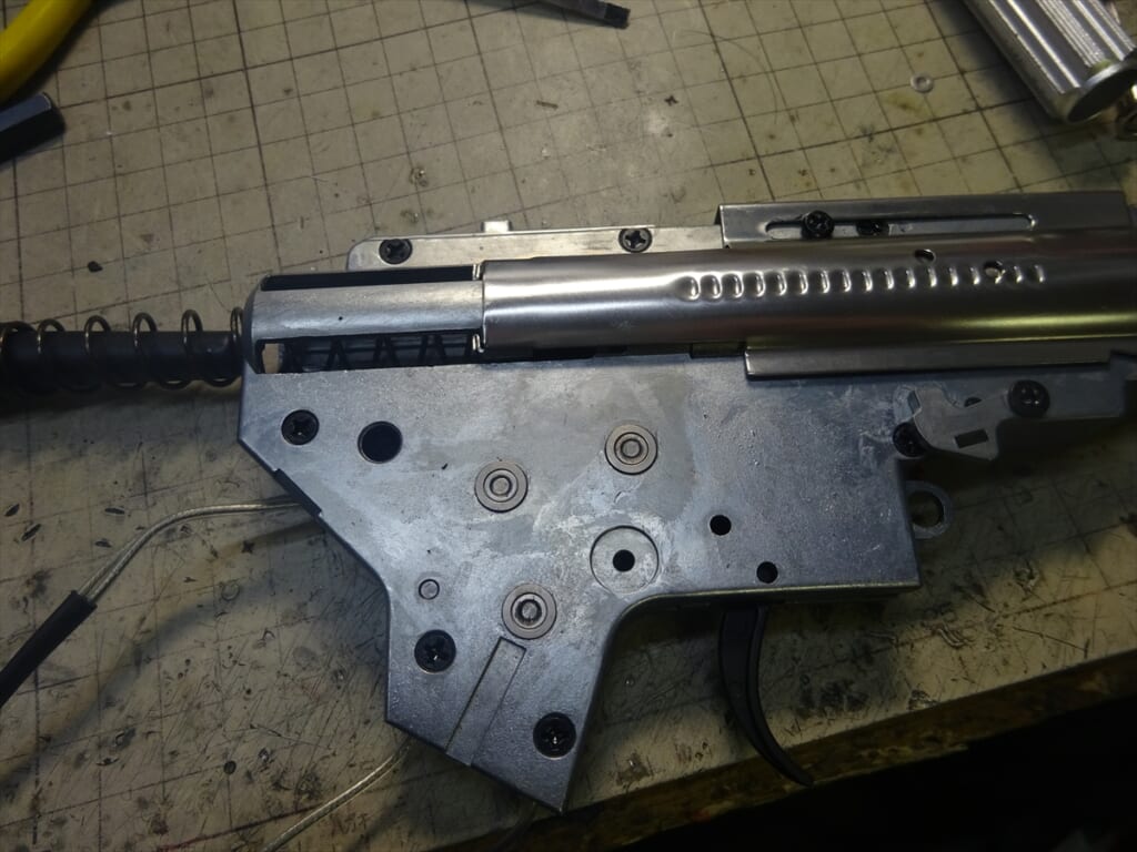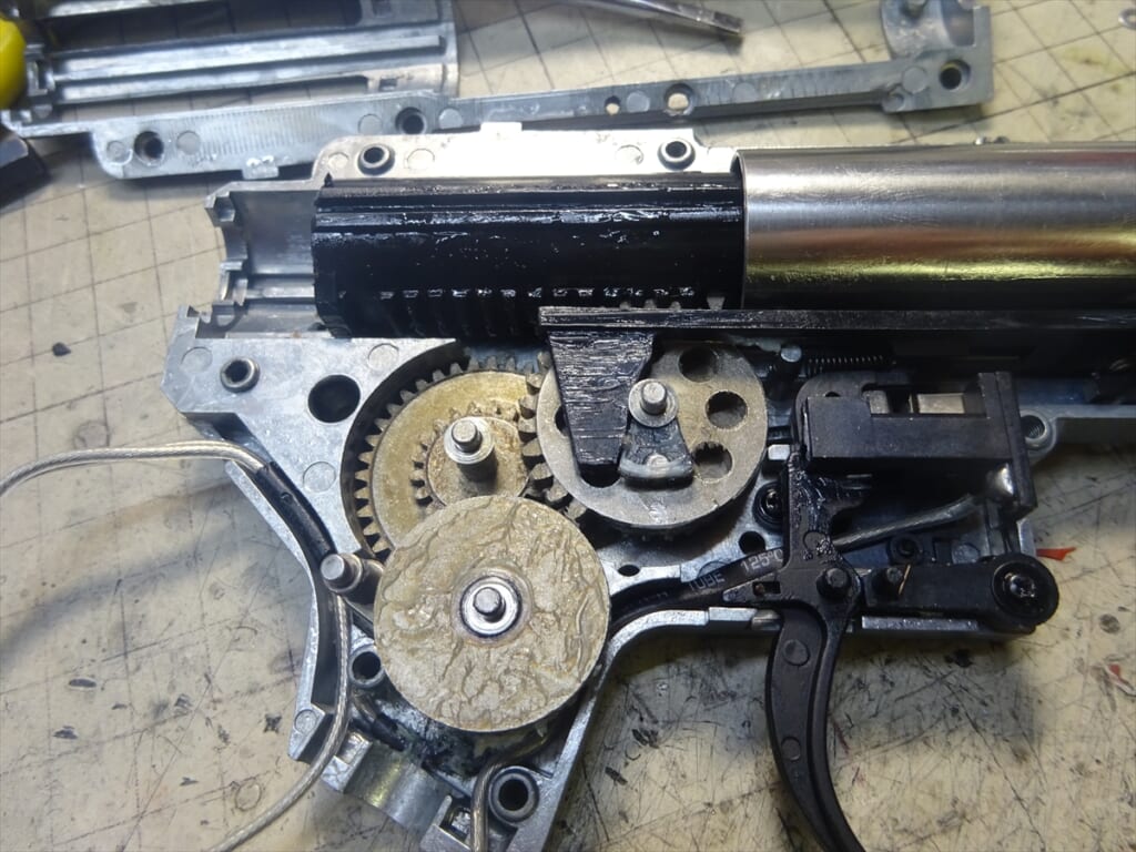 なにが問題かと言うと、ギアは真下からピストンを後退させるのですが、ボルトが当たり右側のみ負荷が掛かる形になるので、ピストンの変摩耗や、クラッシュの原因になります。