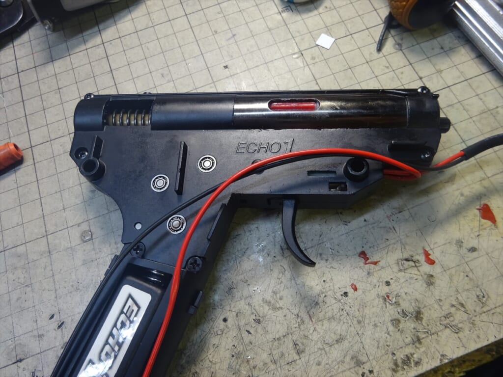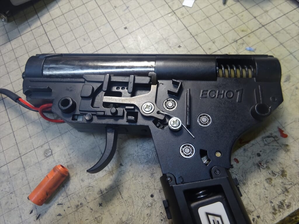 ロアフレームにネジ止めするのですが、トンプソンやファマスの様にガタが出てきたら、一気に初速が落ちるかも・・・