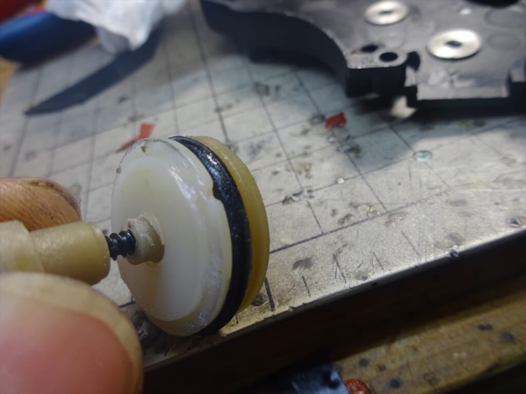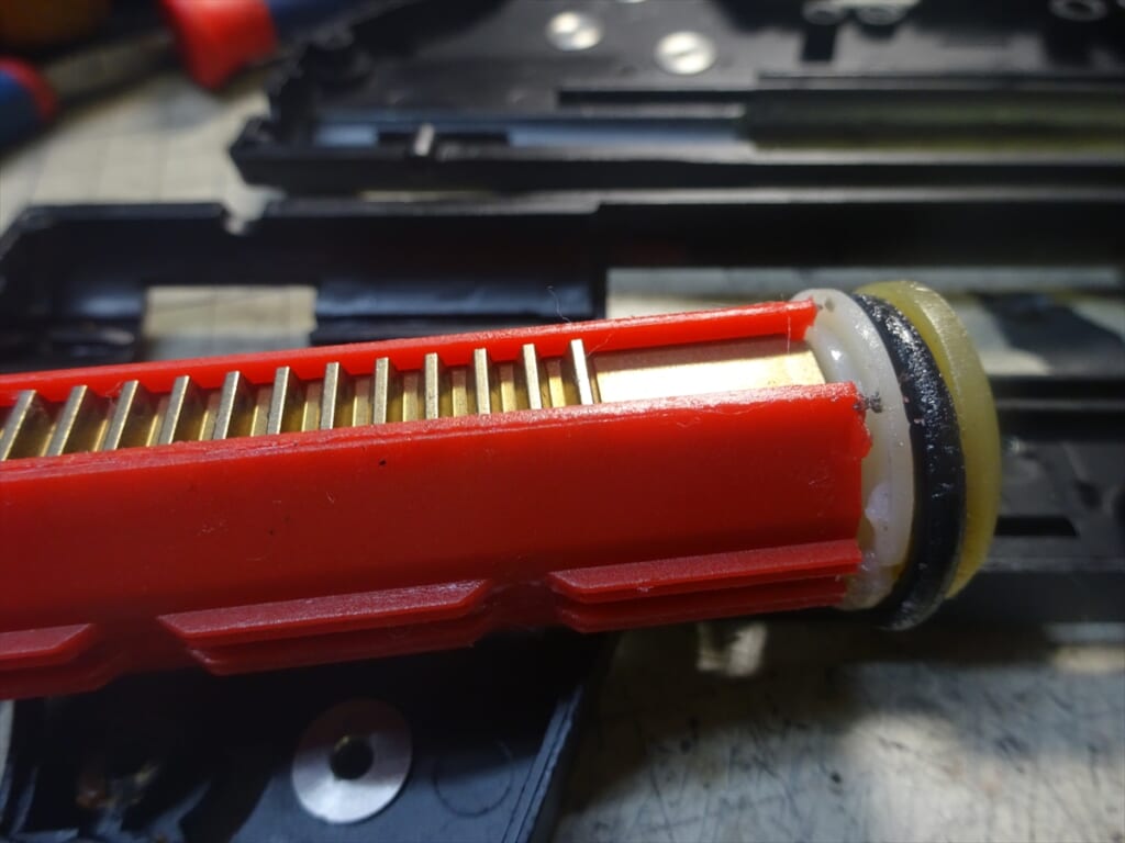 ピストンは最初から全金属歯なのですが、歯を囲んでいる所が大きく歯がめり込んでいるように見えます。