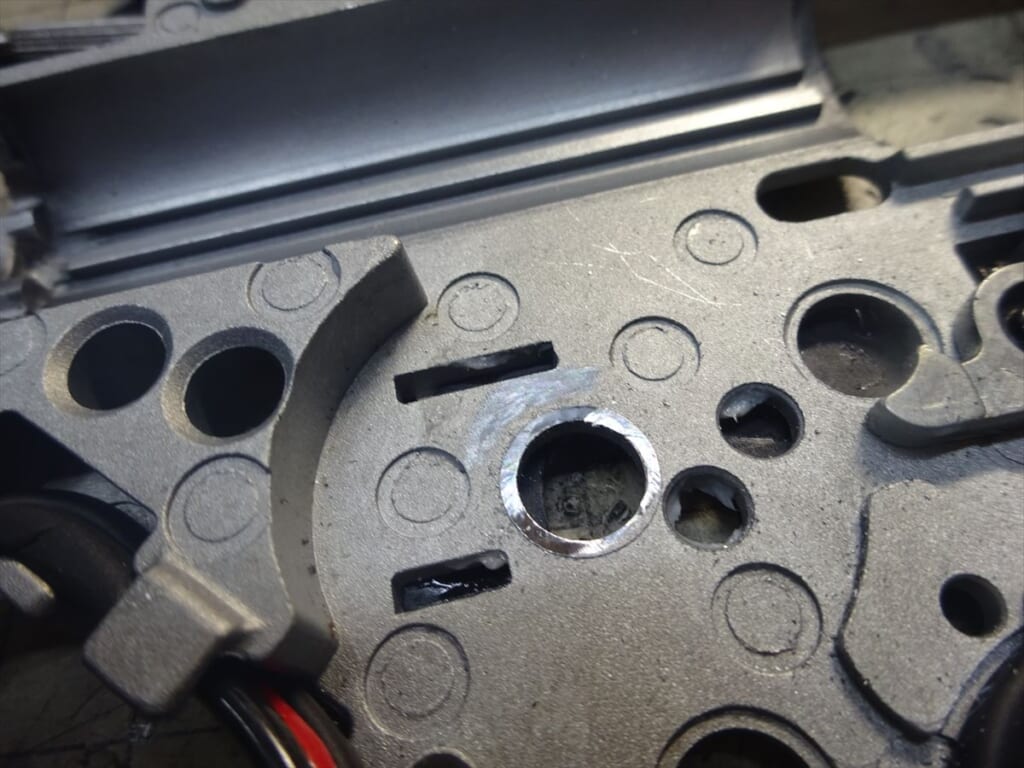 ボールベアリングが付いているのですが、耐久性に不安があるのでメタルに帰るのですが、スパーの所が非常にクリアランスが無いため、削って調整できるスペースを確保します。