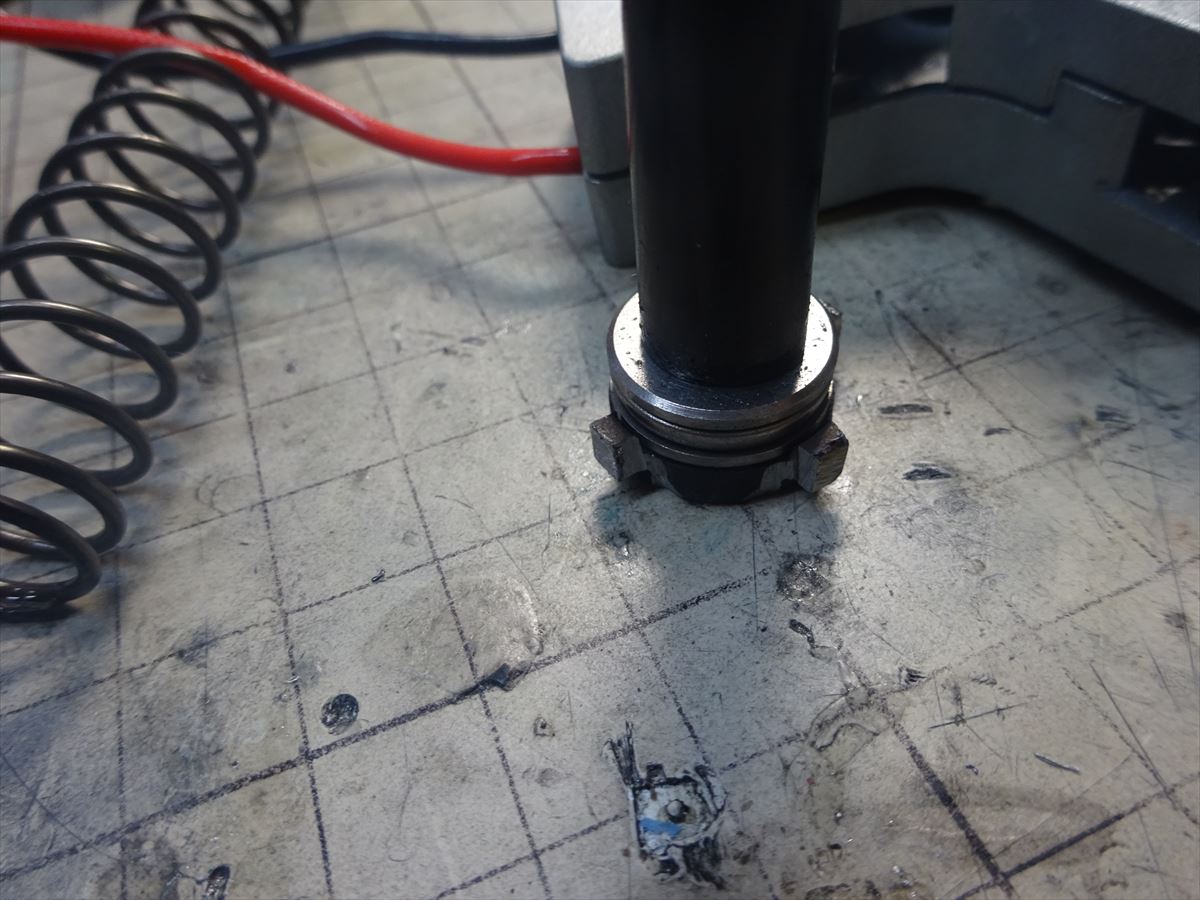 ボールベアリングが付いているのですが、耐久性に不安があるのでメタルに帰るのですが、スパーの所が非常にクリアランスが無いため、削って調整できるスペースを確保します。