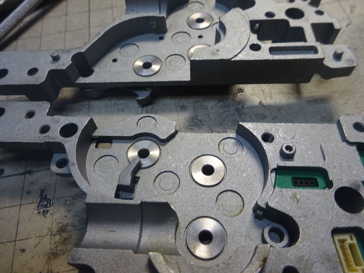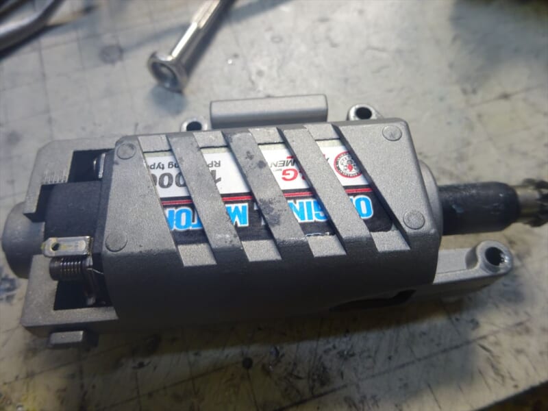 真鍮系の軸受けがついているのですが、これがまた凄い抵抗なので、メタルの軸受けに交換します。