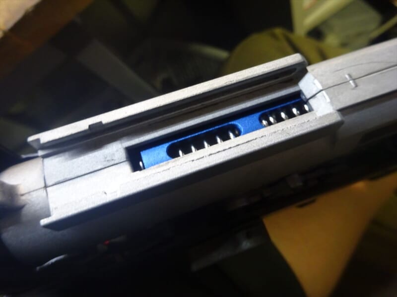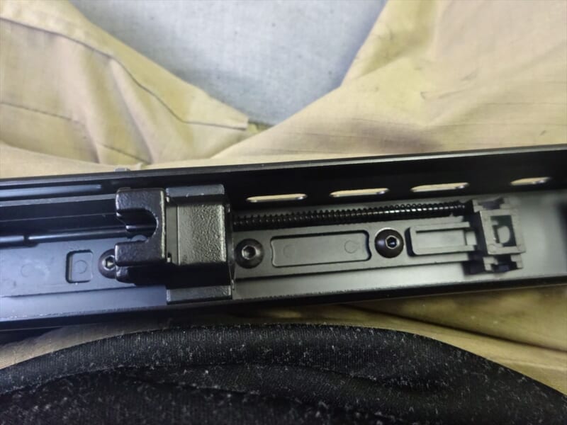 A3用のレイルパネルを付けるにはアウターバレルを外して裏か止めているノーマルのレールを外して交換します。