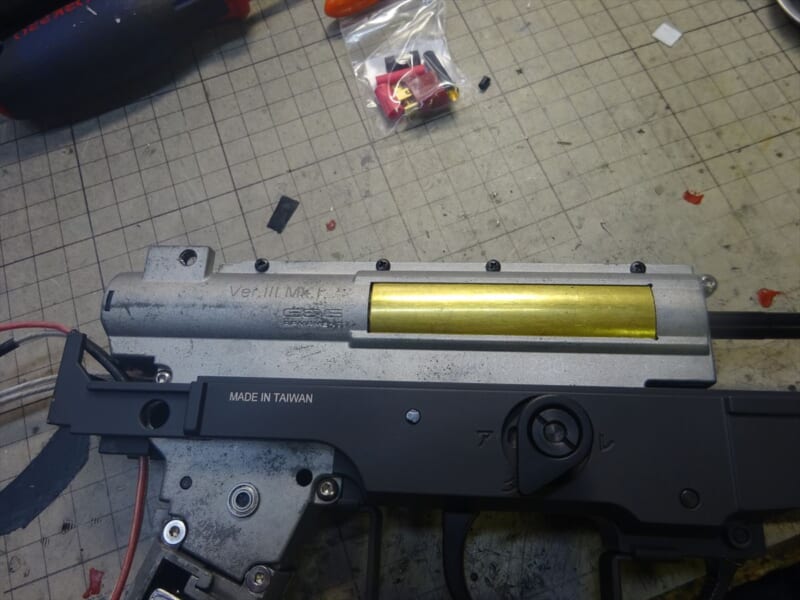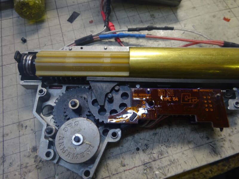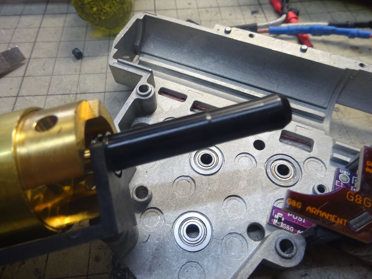 まあテストなので、ハイスピードギアとピストン・タペット周りを交換加工して、ノーマルのモーターで11.1v仕様にしました。
