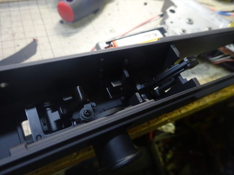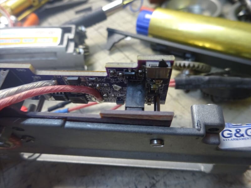 基板は外しませんが、覗いてみると光センサー式の用ですね。マガジンの検知のみ物理スイッチかな