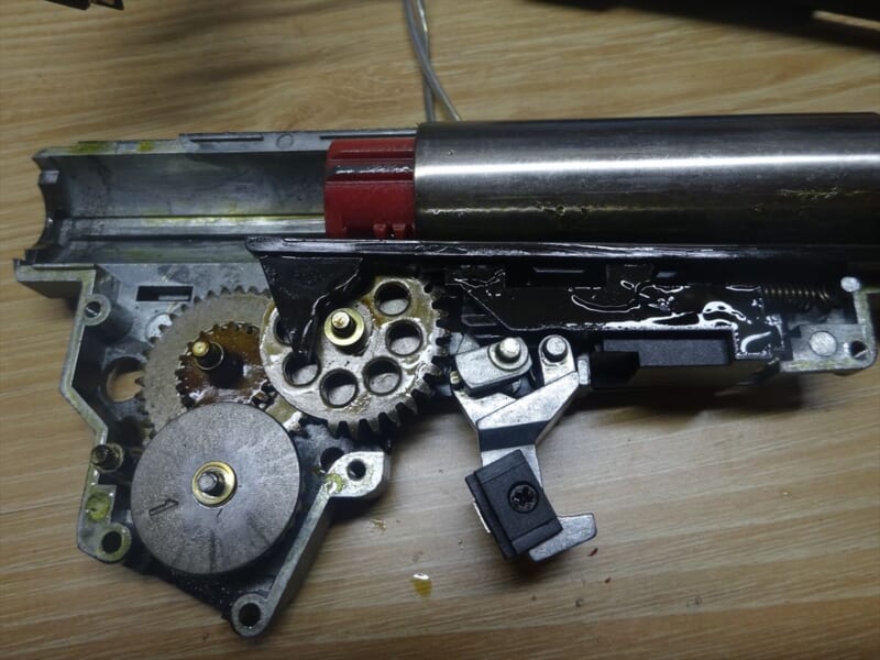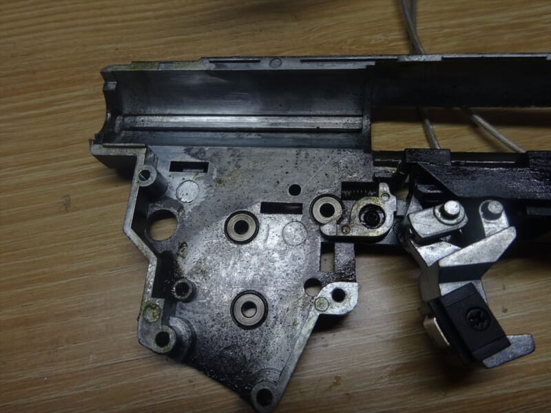 いきなりメカボックスですが、ステアーもP90と同じく後方よりネジ数本外すだけで抜くことが可能です。