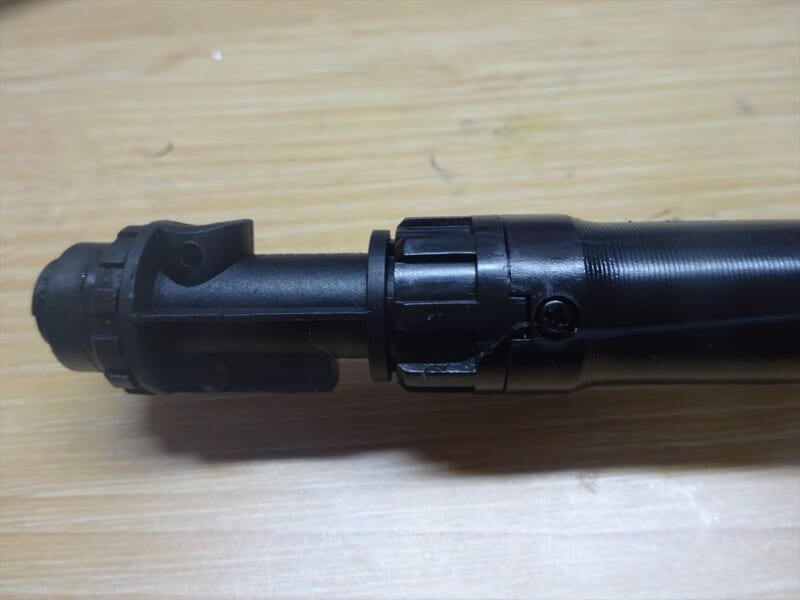 ワンタッチでアウターバレルが抜けますので、このネジを外す(両側)とチャンバーが後方へ抜けます。