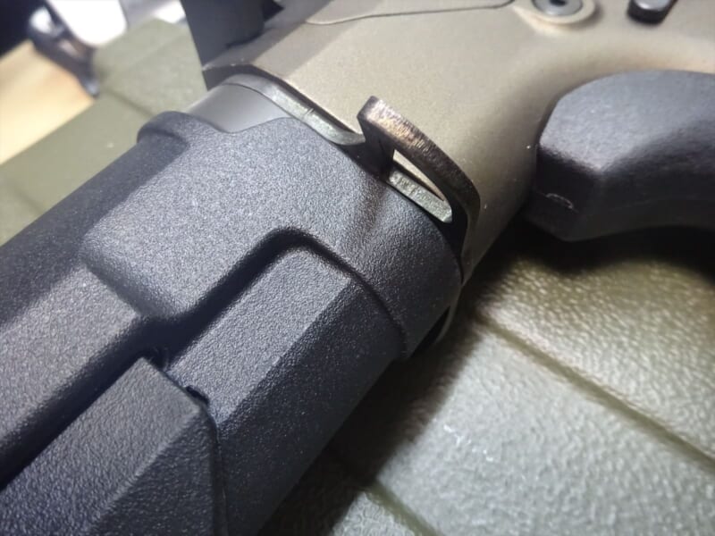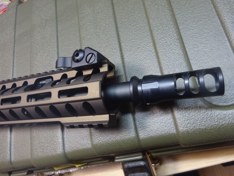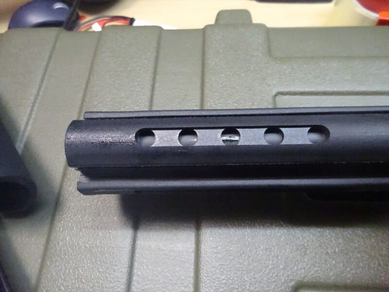 ハイダーですが、7.62mm用のハイダーが付いており、ワンタッチサプレッサー用と思われる溝が入っています。
