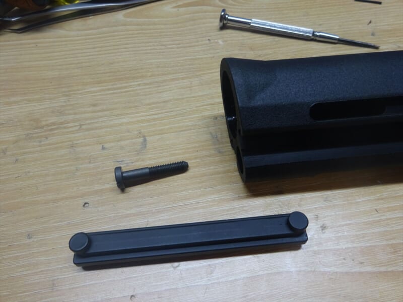 ストックチューブにはめ込んで後ろからネジで固定している状態ですね。