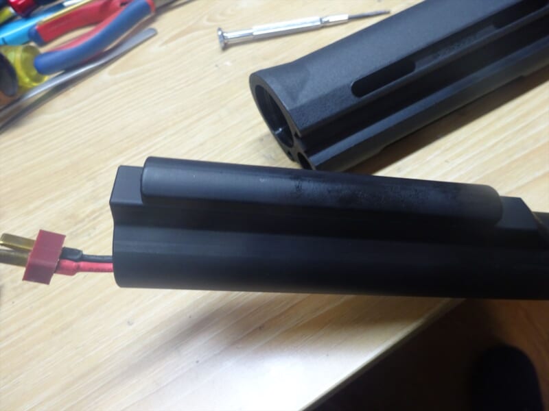 ストックチューブには蓋が付いておりここにバッテリーを収納します。