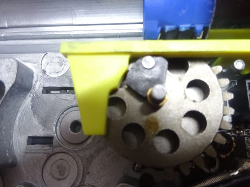 シリンダーが0.5mmぐらい長い。これを無理矢理入れていたのでメカボックスに張り付いたみたいになっていました。