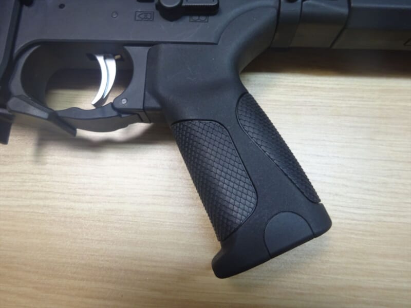 実はノーマルとは別に、フィンガーチャンネル付きの物が同封されて居るのですが、これのマガジンを固定する部分が浅く、マガジンが少し下がってしまい、BB弾を解放するレバーを上手く押せていませんでした。