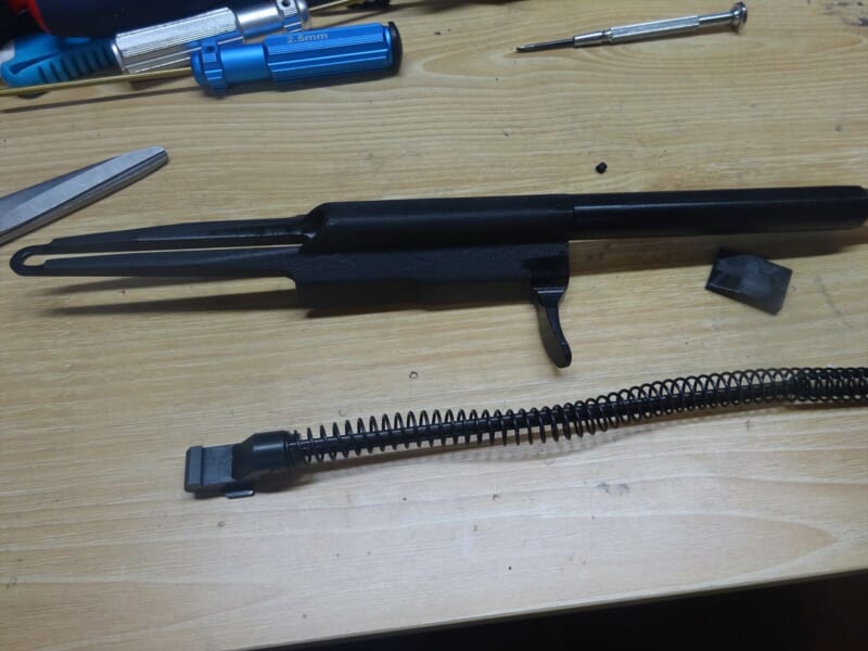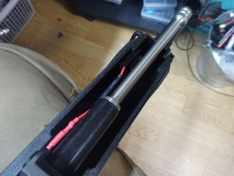 バッリテーはヌンチャク型の7.4v限定な上に、ここまで来るのにカバー・テンションスプリング・ボルト・ハンドガード上部を外す必要があります。