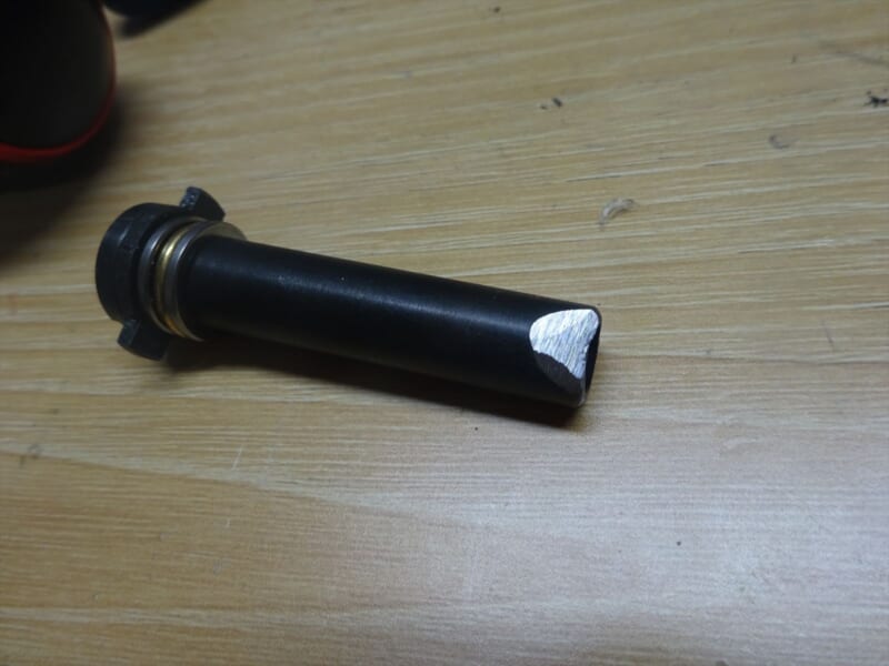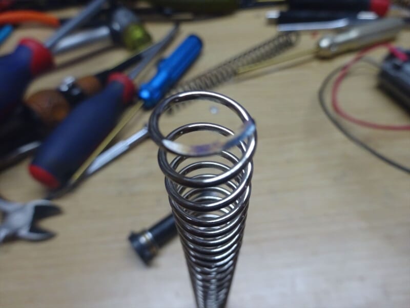 スプリングガイドでずか、ピストンに衝突した場合に逃げやすいように先端を削っておきます。