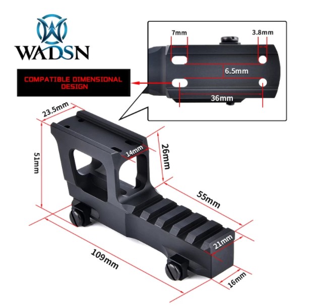 Aimpoint T-1/T-2タイプのドットサイトとG33タイプ等のブースターを搭載できる
