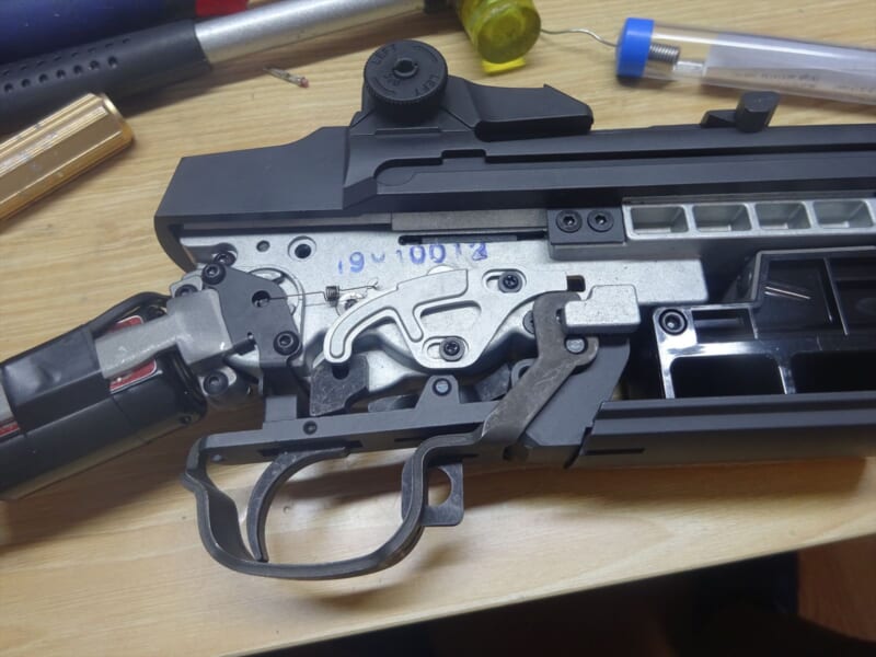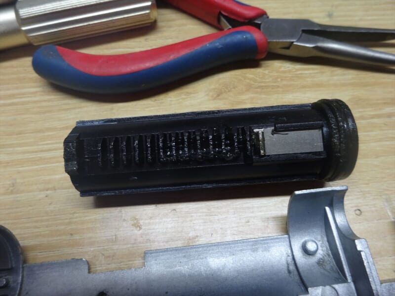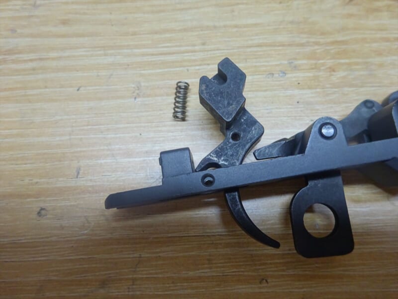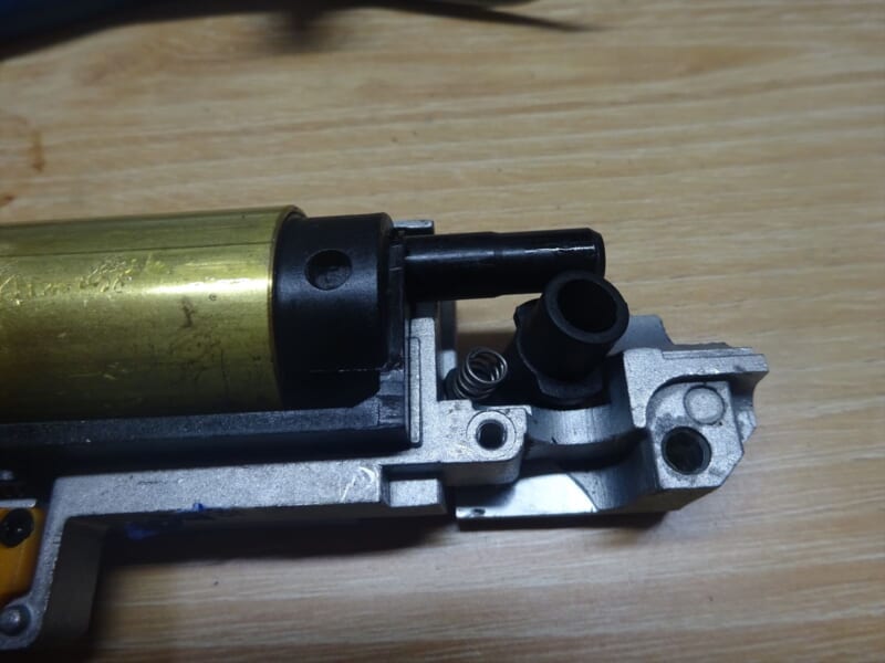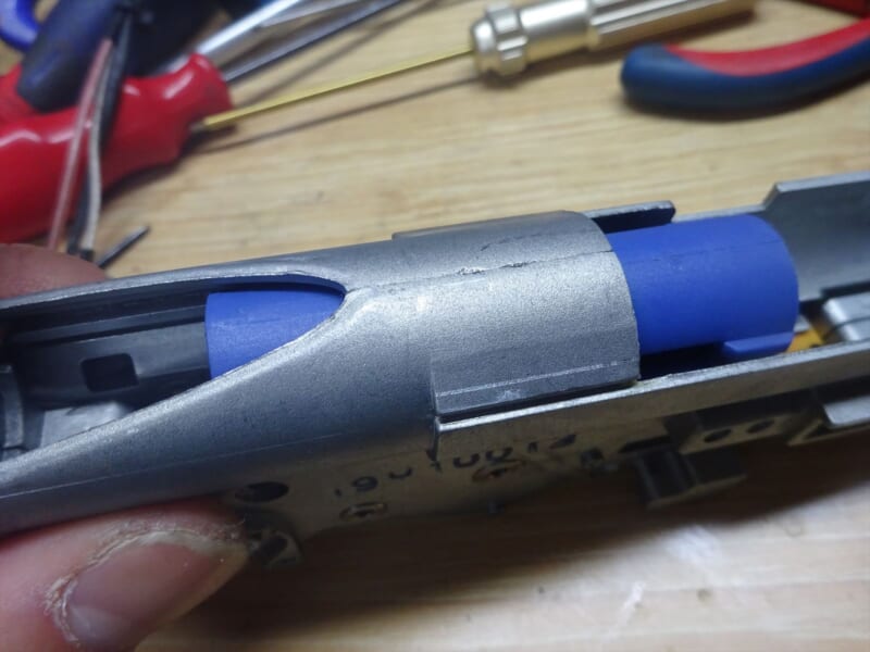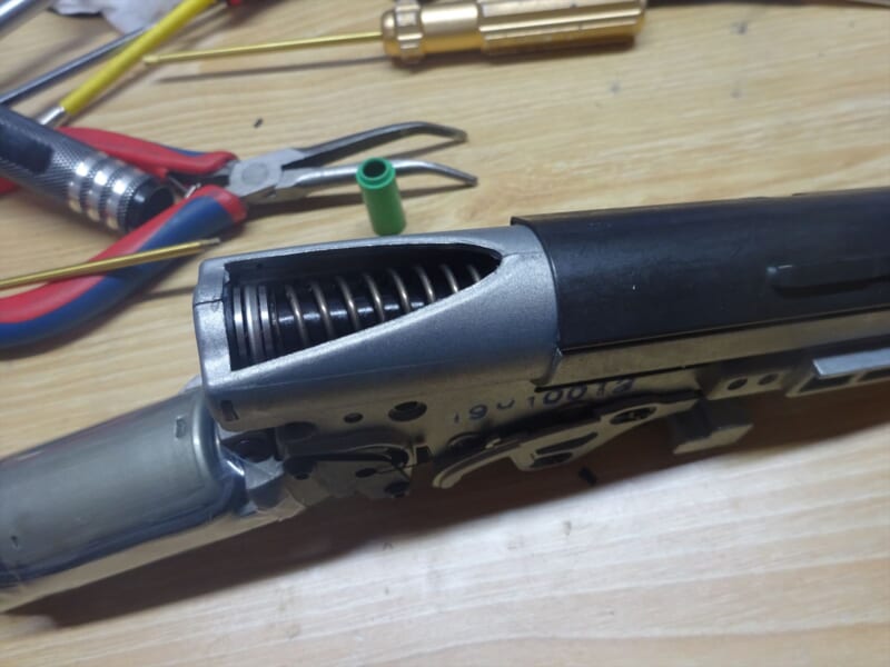 一部がカットされているのですが、スプリングを交換する目的ではなく、レシーバーに合わせてカットされています。
