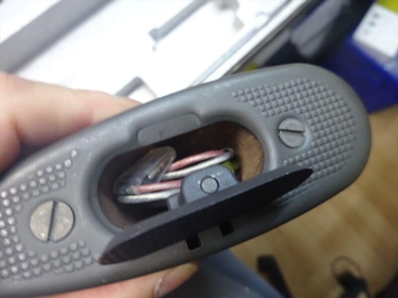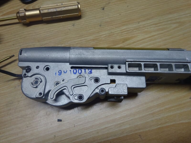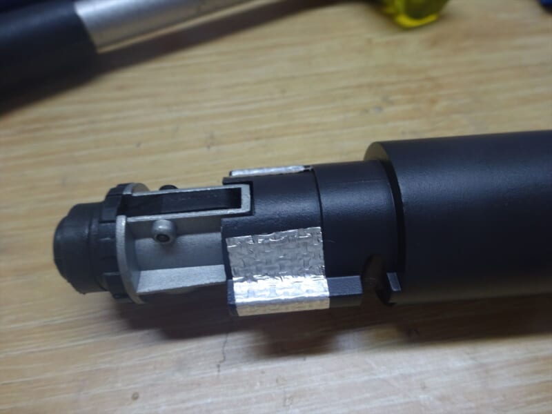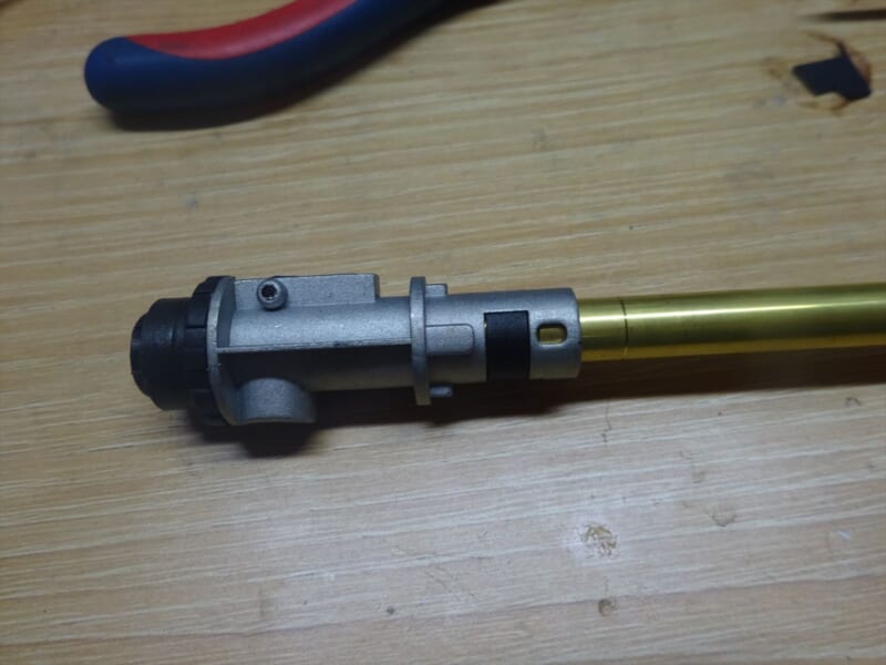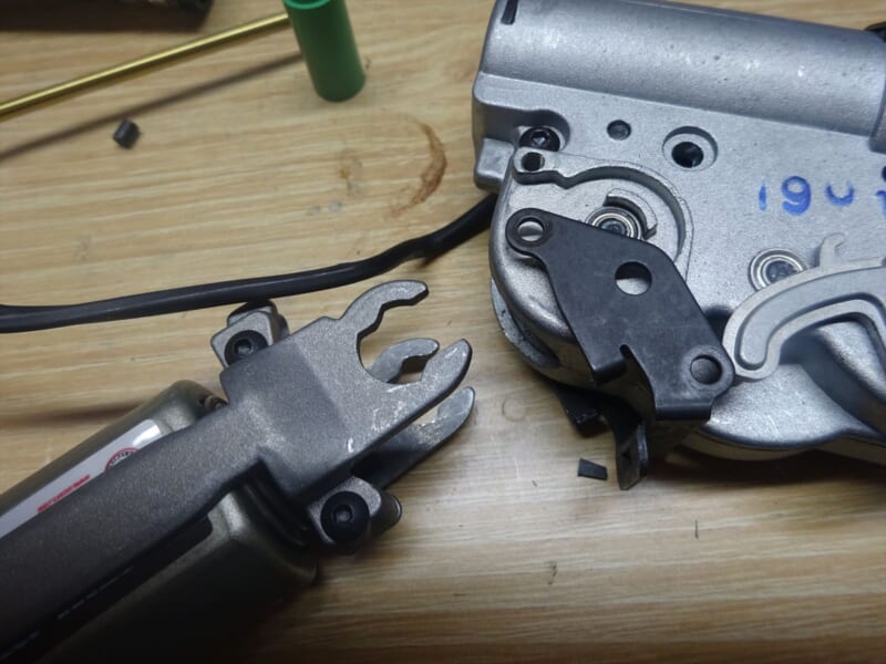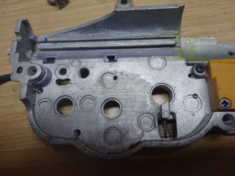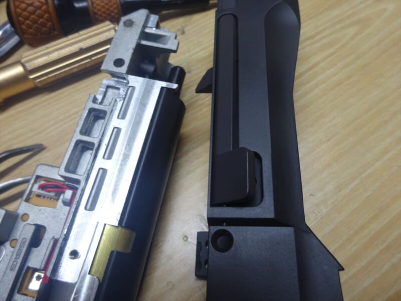 一部がカットされているのですが、スプリングを交換する目的ではなく、レシーバーに合わせてカットされています。