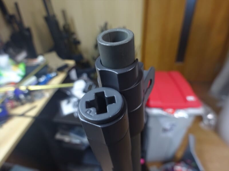 チャンバーはネジによりアウターバレルに固定させて居ますので、飛び出す事はありません。