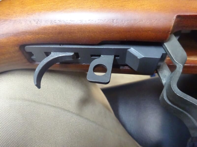 トリガーユニットは、M14と同じで、トリガーガードを展開させて外します。