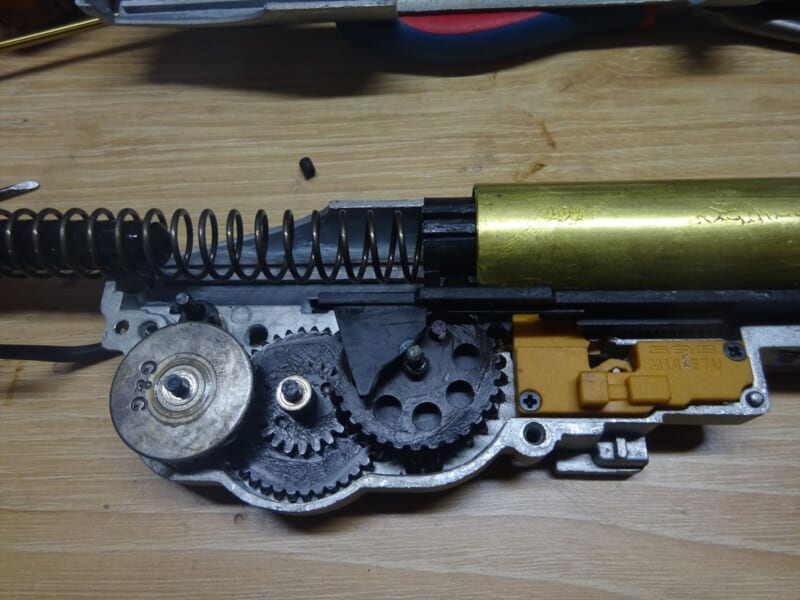 ピストンは、金属歯が1枚の樹脂製で、圧縮漏れが少しある感じです。