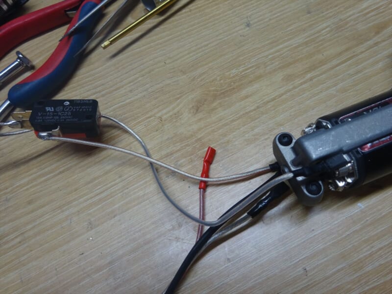 駆動確認と、ノイズ確認の為に、とりあえずモーター直付けのスイッチでテストをしていきます。