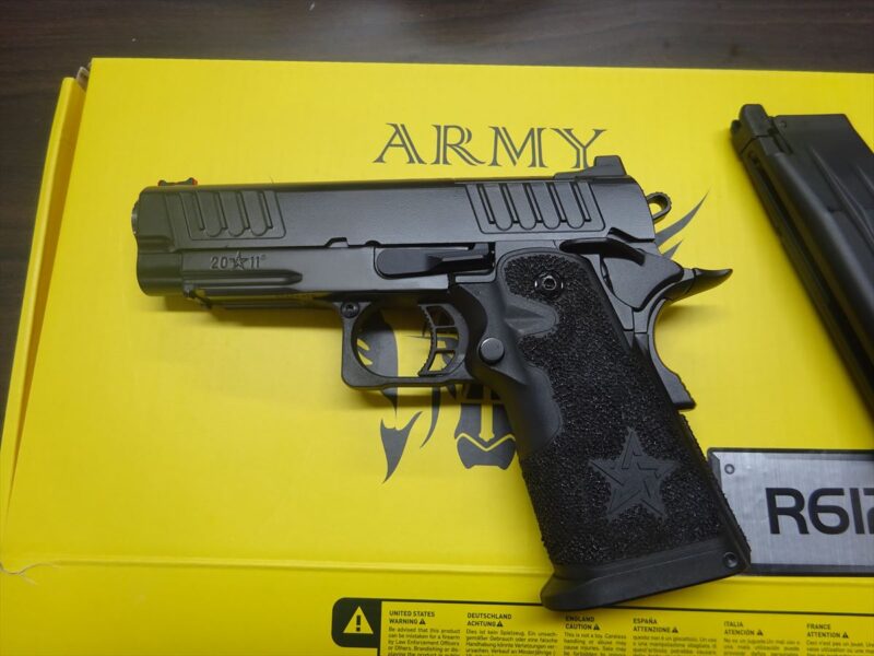 大きな特徴は1911をベースにロアを樹脂製にして装弾数を増やしたモデル・・・そうようはハイキャパ