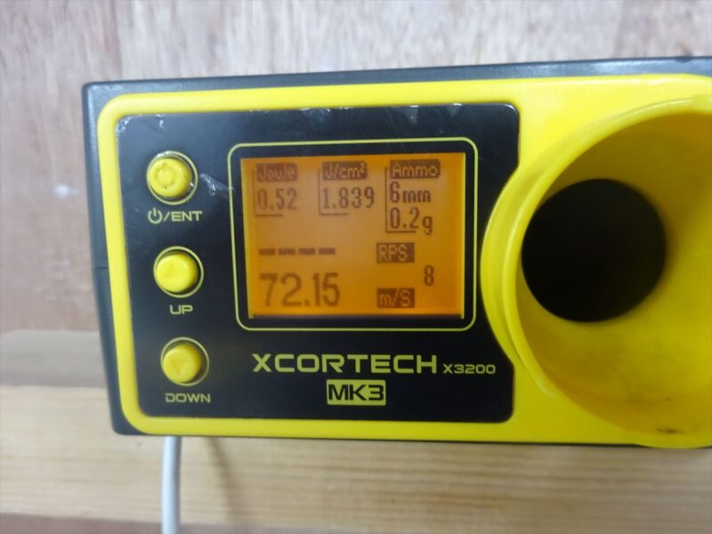 ここまで分解したので、少し初速を上げたいのですが、シリンダー容量が少ない為、あまり大きくは上げる事が出来ず、結局0.2gで76m/sぐらいで落ち着きました。
