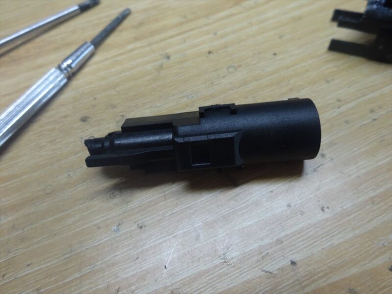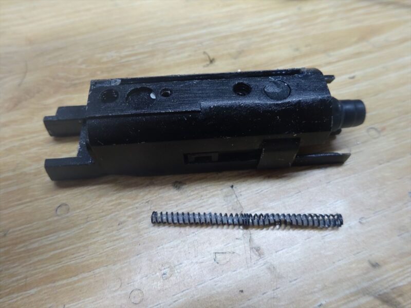 ハイキャパは物にもよりますが、リコイルスプリングロッドが二分割になっておりロッドを分解しないと抜けない個体がありますが、このモデルは普通に外せます。