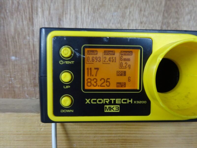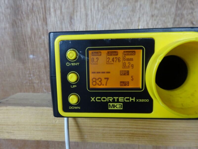 これで、11.1vでサイクルとしては30発弱で、0.25gで適正調整で83m/sにしました。