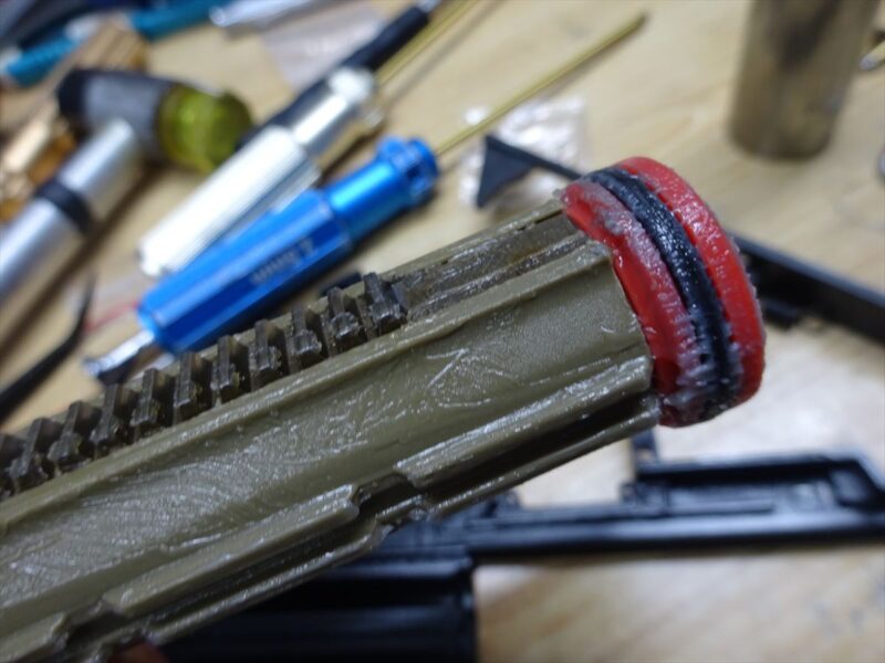 後はBB弾が通るように少し削って調整して、パッキンを交換して戻します。