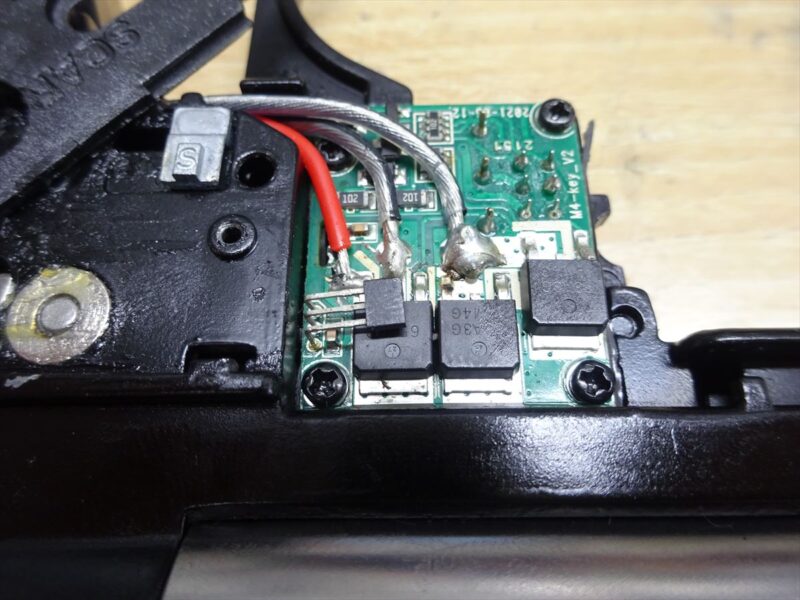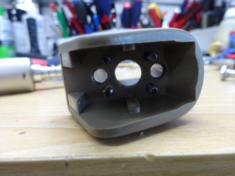 グリップのモーターが通る穴がかなりタイトなので、少し広げないとサードパーティーのモーターが入らない場合があるので削ります。