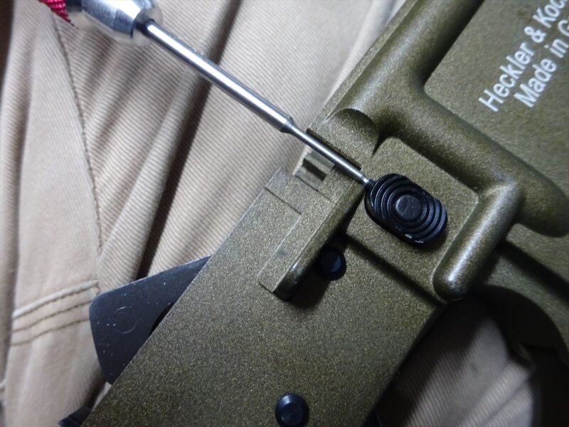 フロントピンなのですが、VFCの場合は少し経が大きいので削らないと入りません。