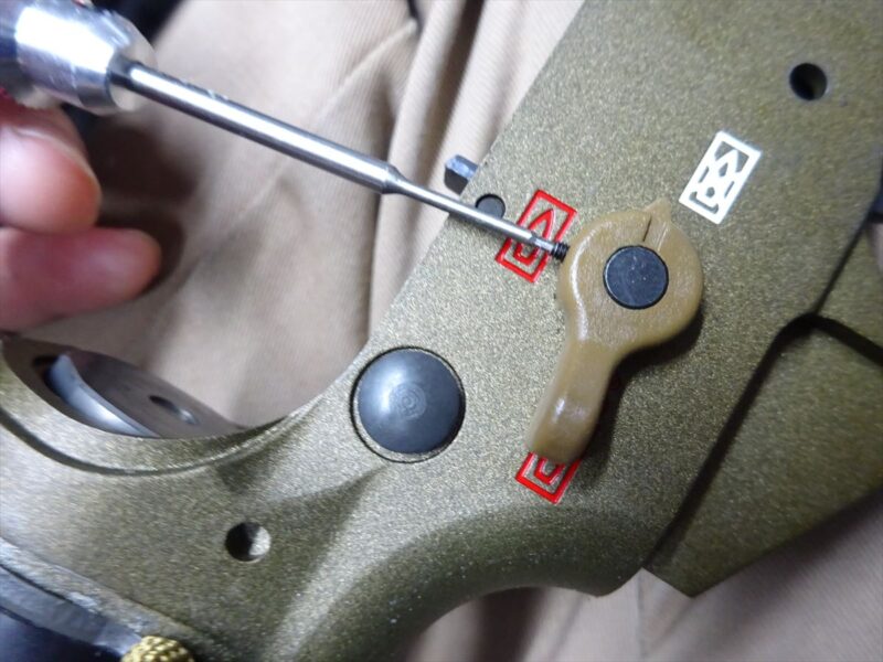 セレクターはアンビなので、右側を外します。やはり0.9のイモネジ