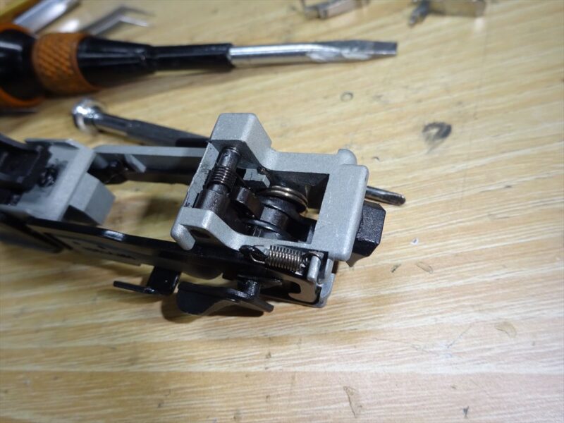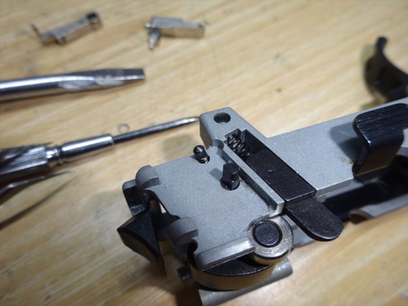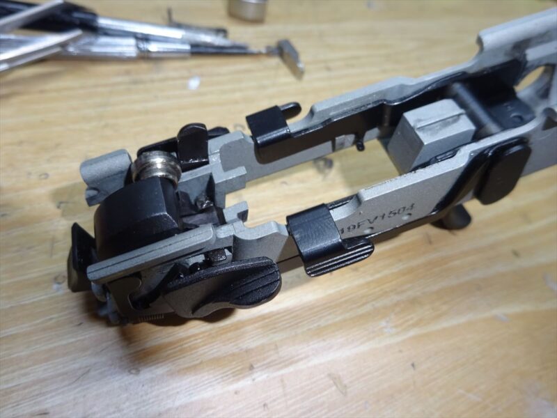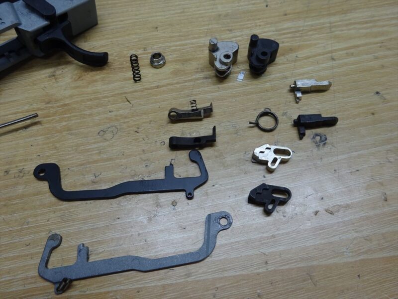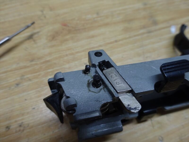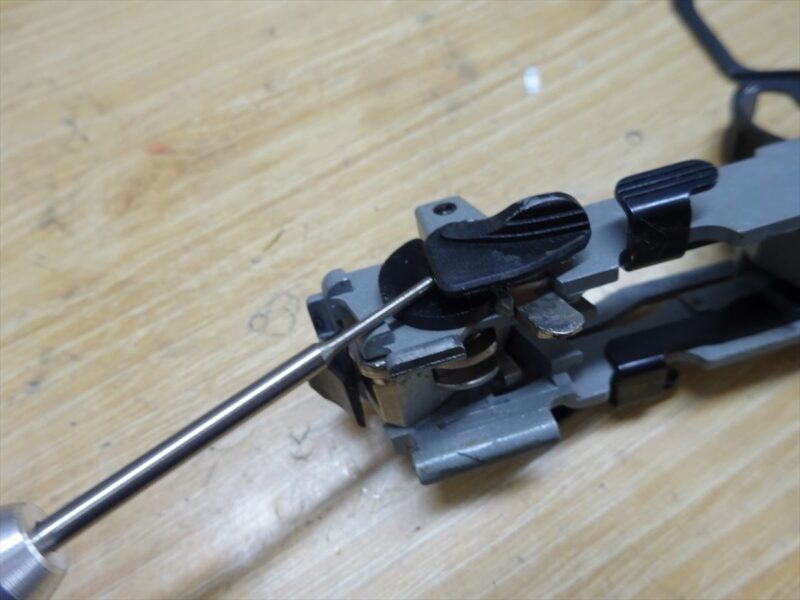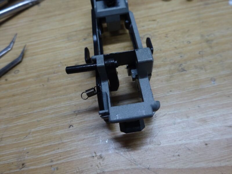 ここでトリガーアームの動きが渋い場合は、削ったり少し曲げ加工が必要な場合があります。