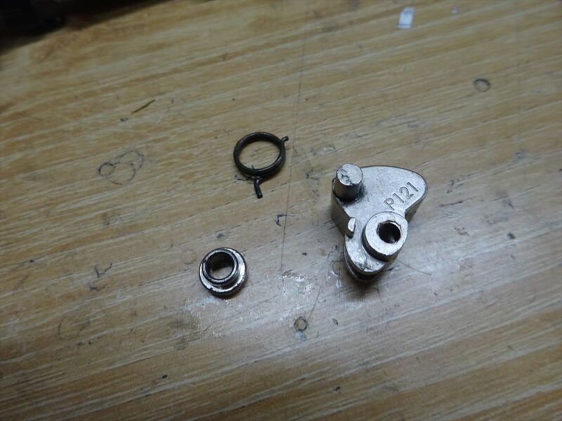 この機関部だけで動いても、ロアーに組み込んだらハンマーは起きているのに撃てないと言う現象はここのトリガーアームの動きが悪い事が多いです。