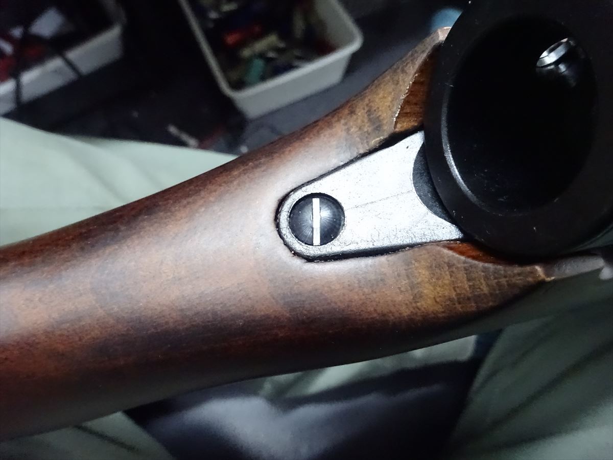 ワンピース構造の銃床はリアルウッドで、比較的傷も少ない感じ。