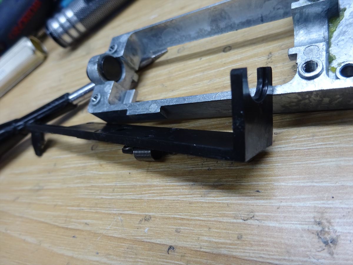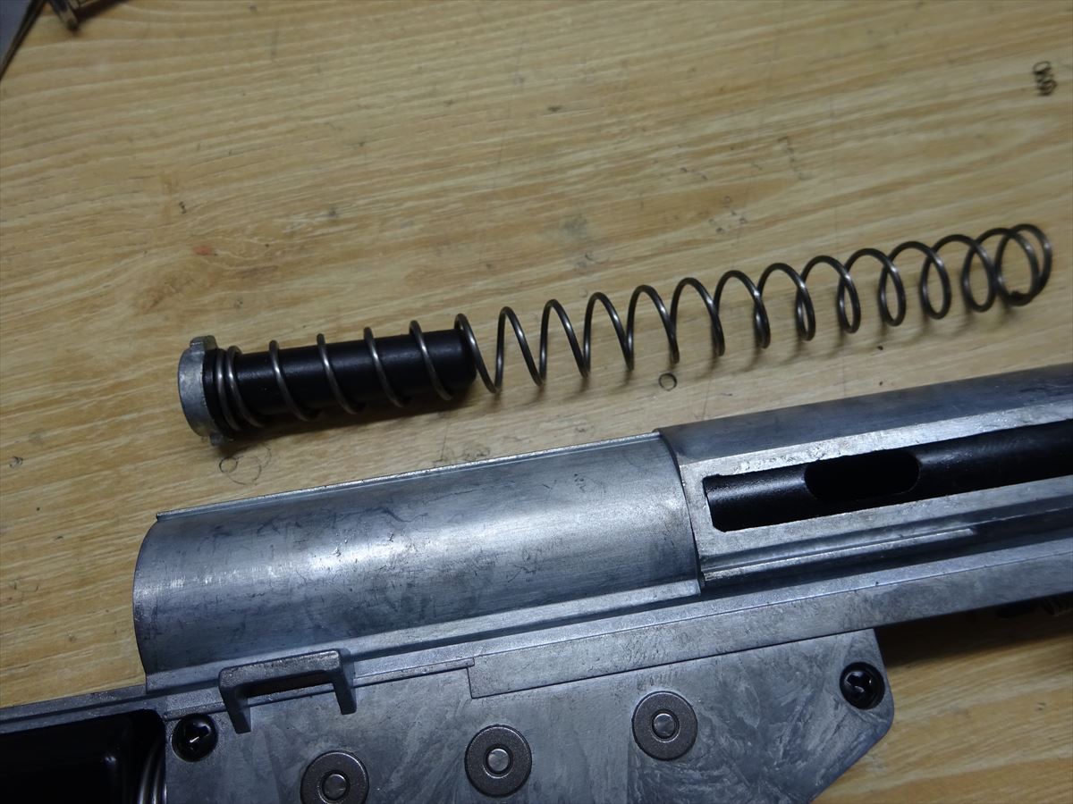 スプリングはQDになっていて、取り出しは比較的簡単ですが、メカボックスを取り出さずに行うには少し面倒かも。