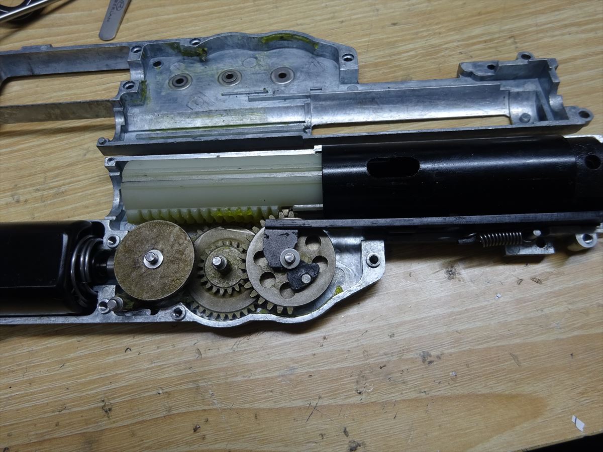 ギアはよく見る18:1で、うっすらと変色したのか最初からなのかわからないグリスが塗られています。