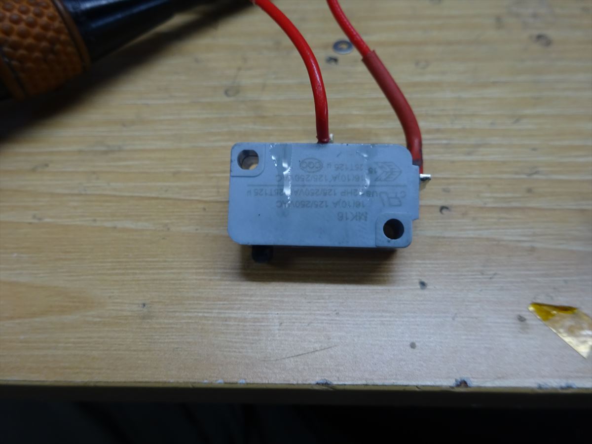 配線出口ですが、マイクロスイッチの接点が金属に触れそうだったので、フライスで削つて距離を空けて液体パッキンを被せておきます。