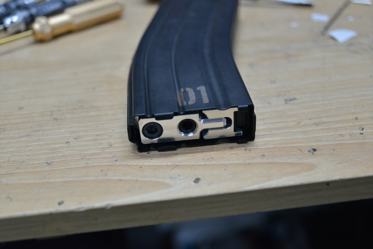 このマガジンCo2でVFCのGBBRに使える数少ないマガジンとなり、ボンベ周辺の剛性も高く、安全に使えるのですが、弾が入らない、弾上がりが悪い等個体差があります。