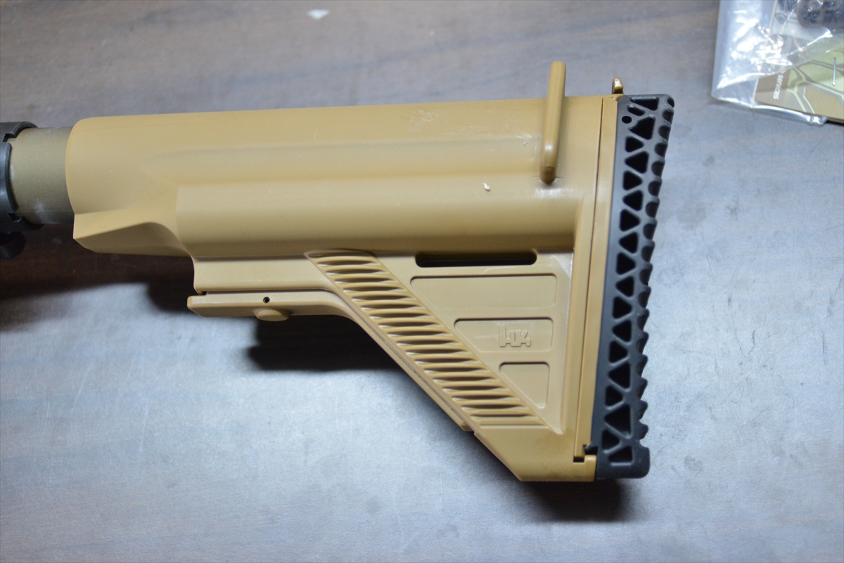 ストックは416の用にエンドに丸みを持たせたものではなく、少し反っている程度になっています。