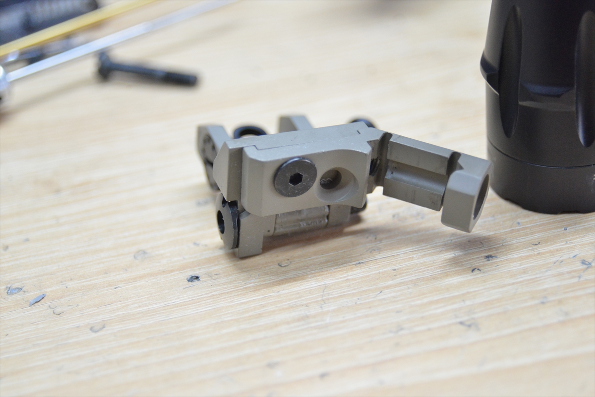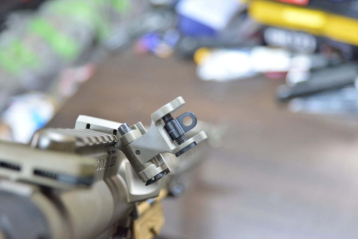 リアサイトは照門口は2段階で、左右の調整が出来、折りたたみが可能です。もちろん金属製