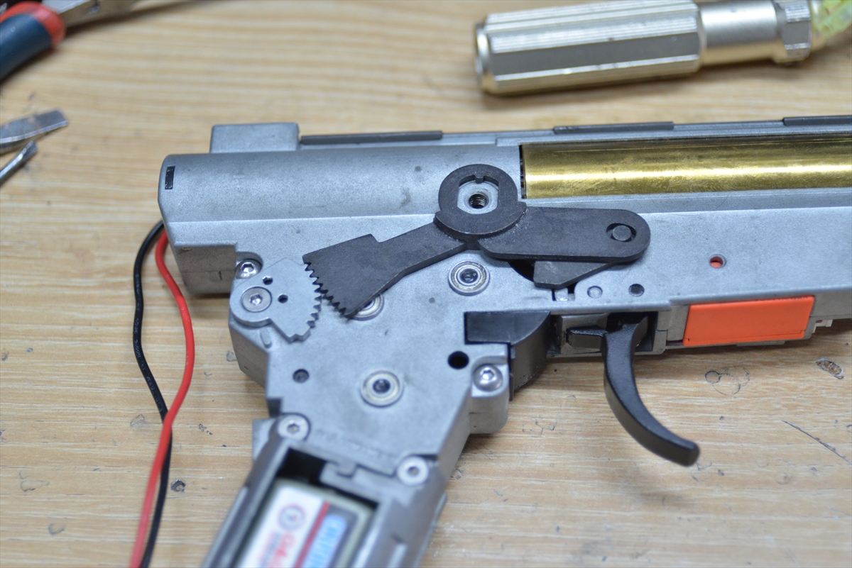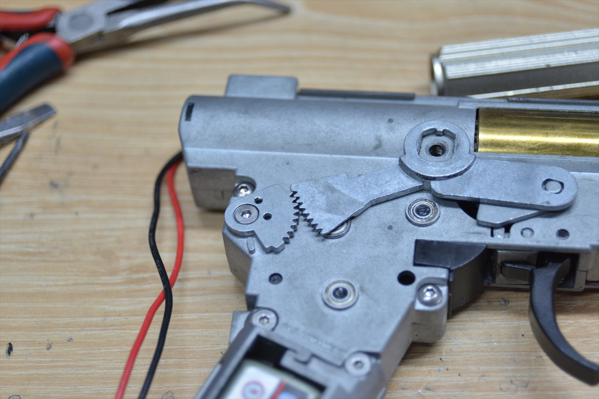 すべてのAKに言えるのですが、このギアのクリアランスと、セレクター軸のクリアランスがガバガバだと、AUTOやセミのセレクター位置が狂ったり撃てなくなります。